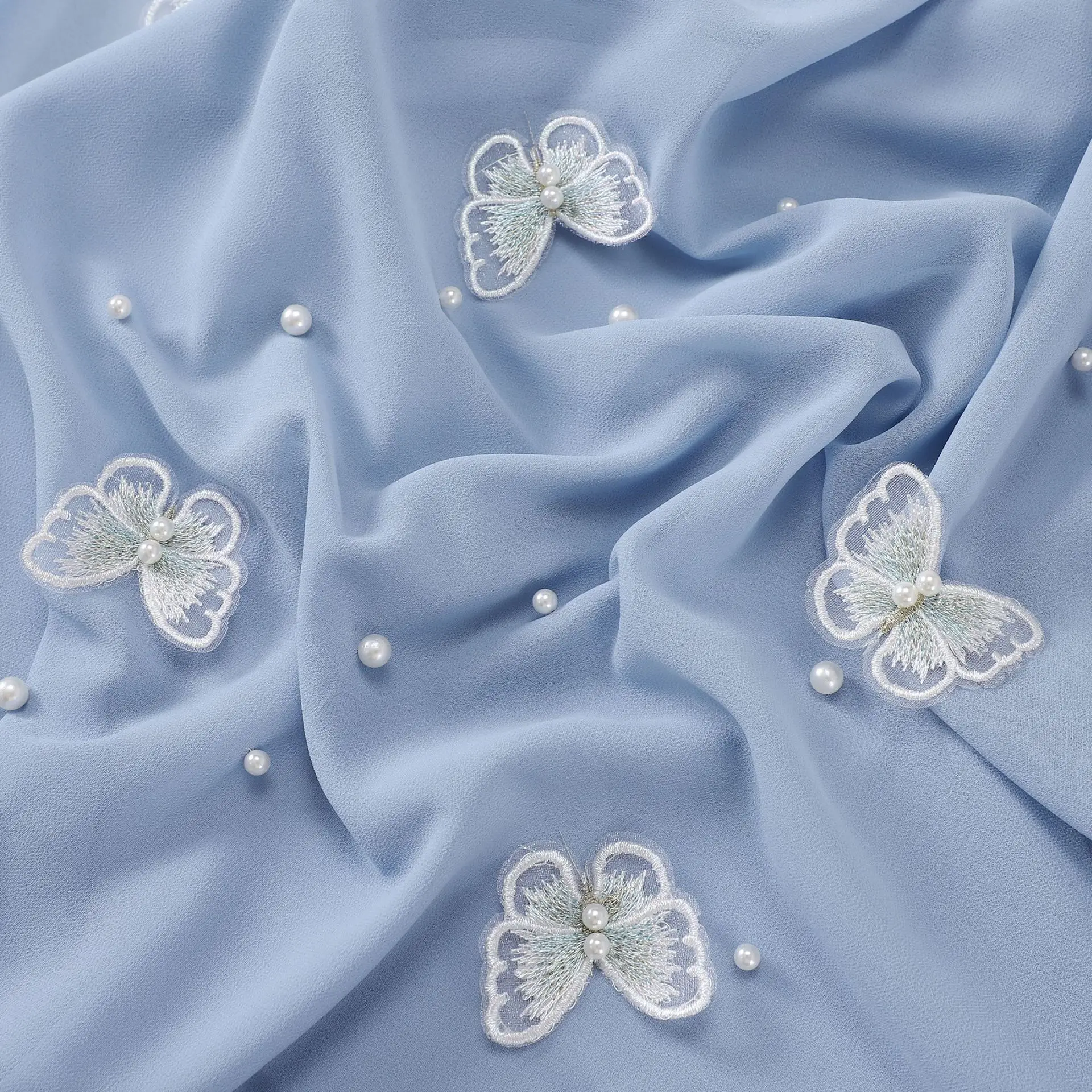 Femme élégant foulard en mousseline de soie perles 3D papillon musulman Long châle écharpe Ramadan tête enveloppement Hijab asie du sud-est Islam Turban