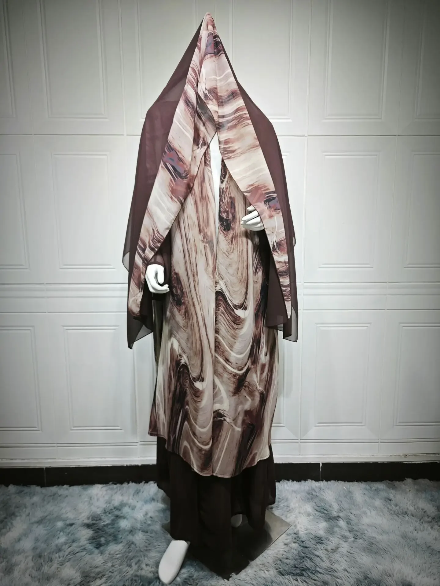 Femmes Abaya écharpe 2 pièces ensemble Cardigan Robe dubaï Eid imprimé musulman marocain caftan fête Jalabiya robes Largos arabe longue Robe |