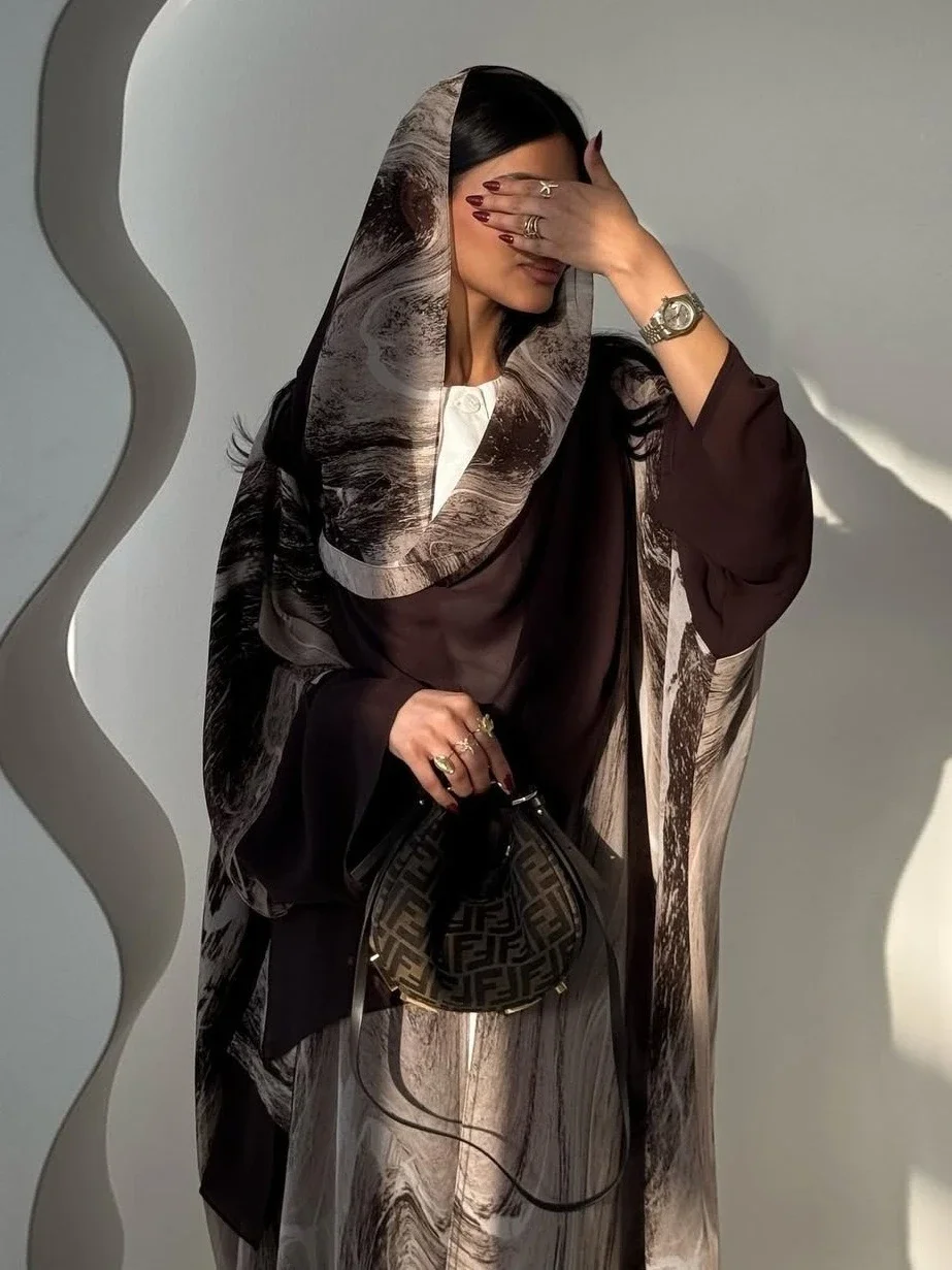 Femmes Abaya écharpe 2 pièces ensemble Cardigan Robe dubaï Eid imprimé musulman marocain caftan fête Jalabiya robes Largos arabe longue Robe