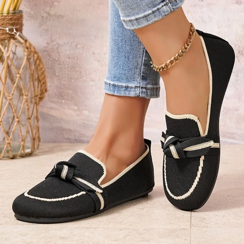 Femmes appartements 2025 nouveau tricoté respirant chaussures plates femmes grande taille léger mocassins anti-dérapant décontracté plat baskets femmes