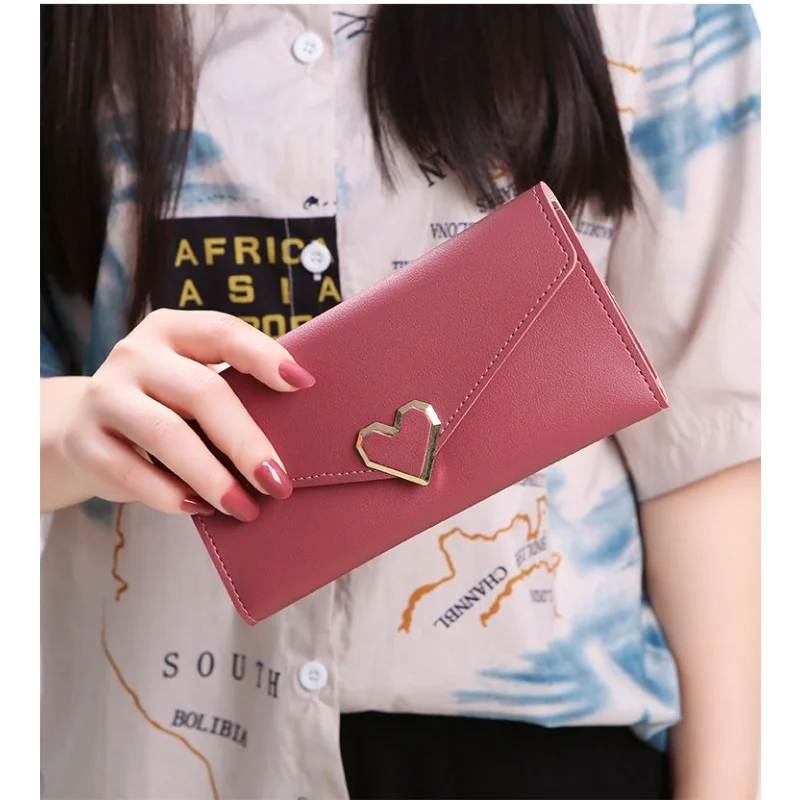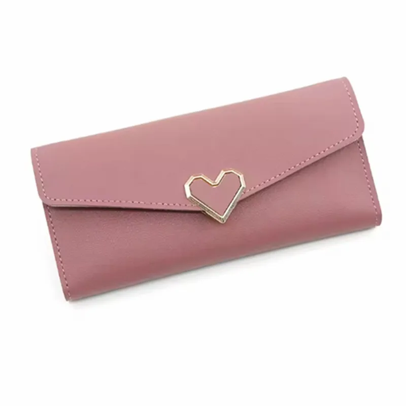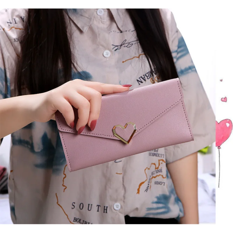 Femmes fermeture éclair sac à main portefeuilles mode coeur femme couleur unie en cuir PU porte-monnaie dames Long bracelet porte-carte pochette |