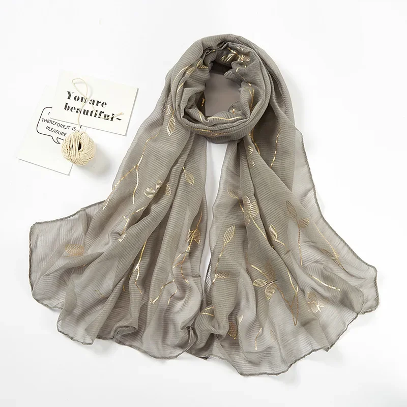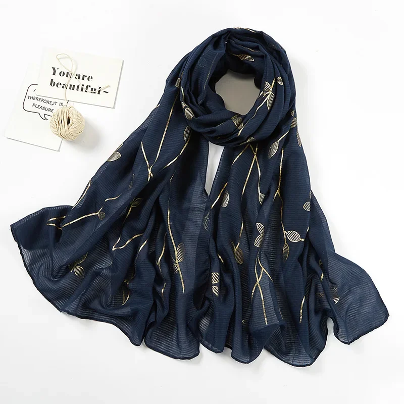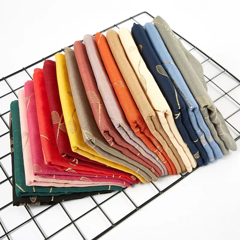 Femmes Hijabs musulman Turban nouvelle mode décontractée coton et lin bronzé feuille écharpe florale amérique vente chaude foulard Spot bon |