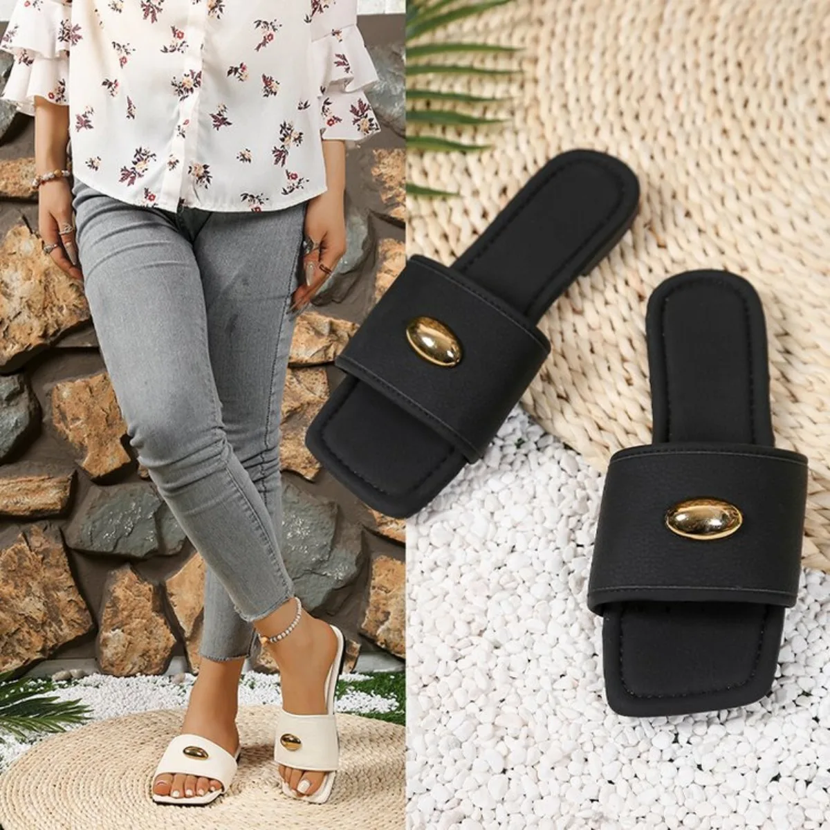 Femmes luxe Bling décor glisser sandales Beige noir confortable doux été en plein air mode élégant Sexy décontracté bureau fête 2025 appartements |