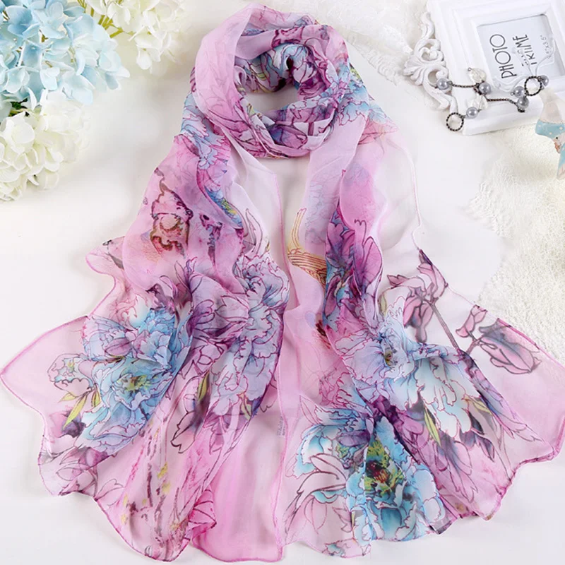 Femmes mode mousseline de soie Georgette foulard en soie pour musulman Hijab pivoine fleur Bandana été plage Sarong écharpe et châle HY30 |