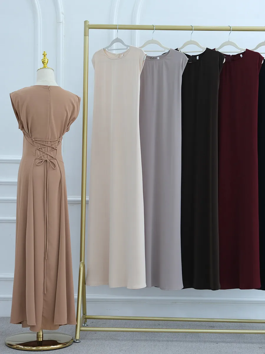 Femmes musulmanes arabe dubaï Abaya couleur unie intérieur longue Robe ceinture extensible modeste Ramadan Robe caftan Femme Islam vêtements