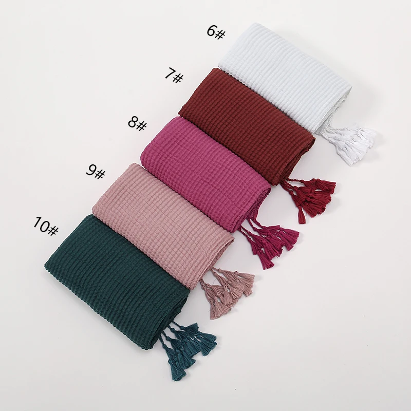 Femmes musulmanes froissé Hijabs écharpe Femme Musulman doux coton foulard islamique Hijab châles enveloppes foulards bandeau Turban |