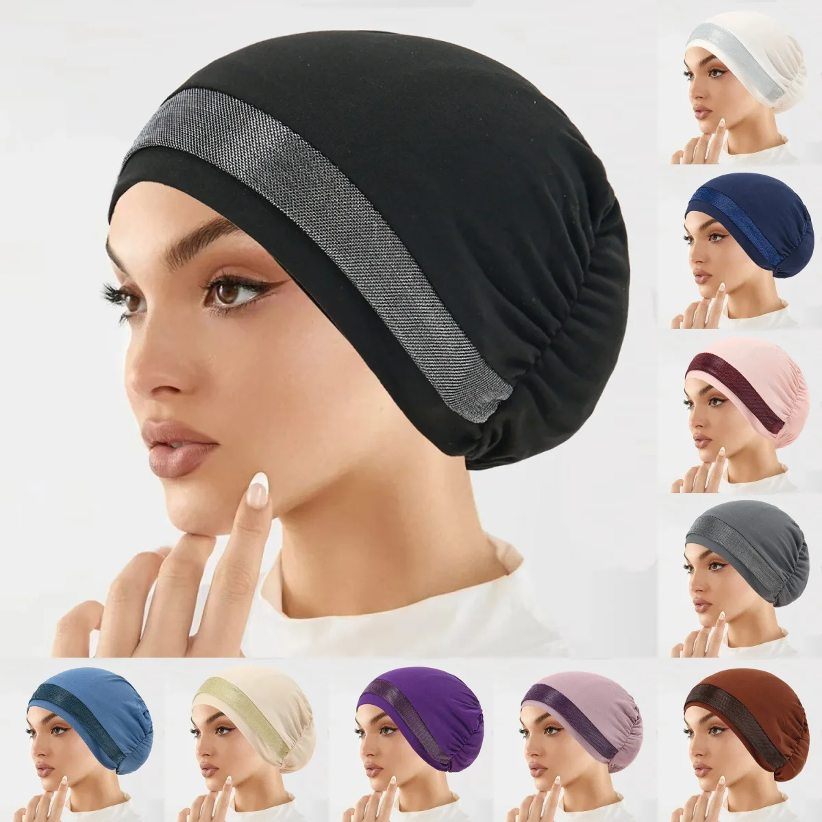 Femmes musulmanes paillettes chapeau intérieur casquette islamique sous-écharpe enveloppement chimio Bandana musulman perte de cheveux bonnets Hijab Bonnet sous-capuchon indien |