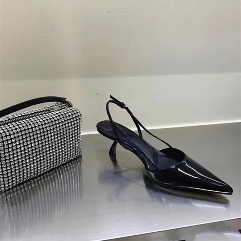 Femmes noires bout pointu talons chaussures sandales 2025 robe fête mode été pantoufles nouveau marche tongs pompes diapositives |
