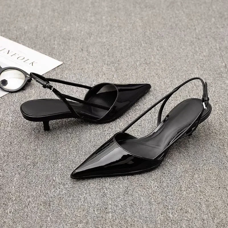 Femmes noires bout pointu talons chaussures sandales 2025 robe fête mode été pantoufles nouveau marche tongs pompes diapositives