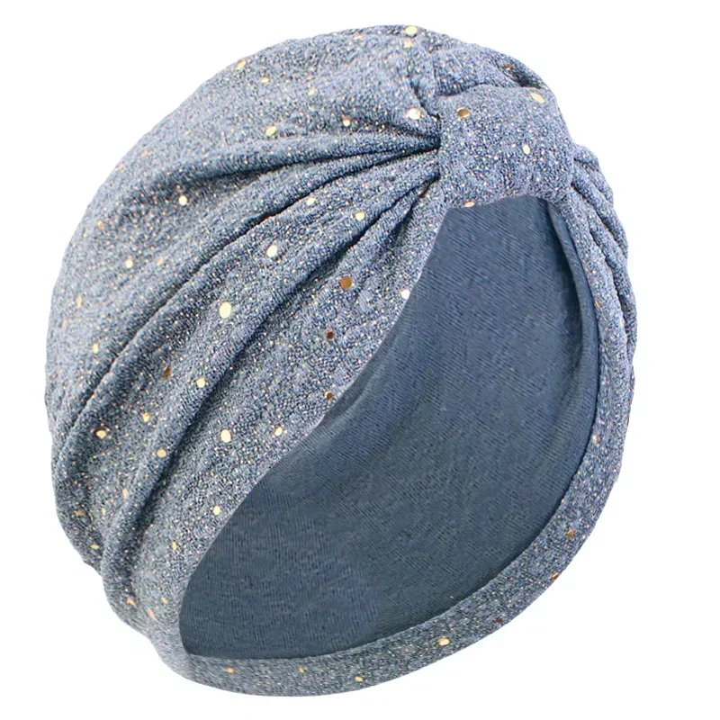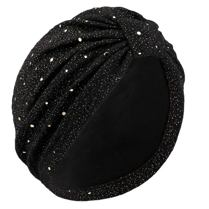 Femmes paillettes noué Turban indien chapeau musulman Hijab Bonnet Bonnet perte de cheveux foulard chimio casquette chapeaux Bandanas Turbante Mujer |