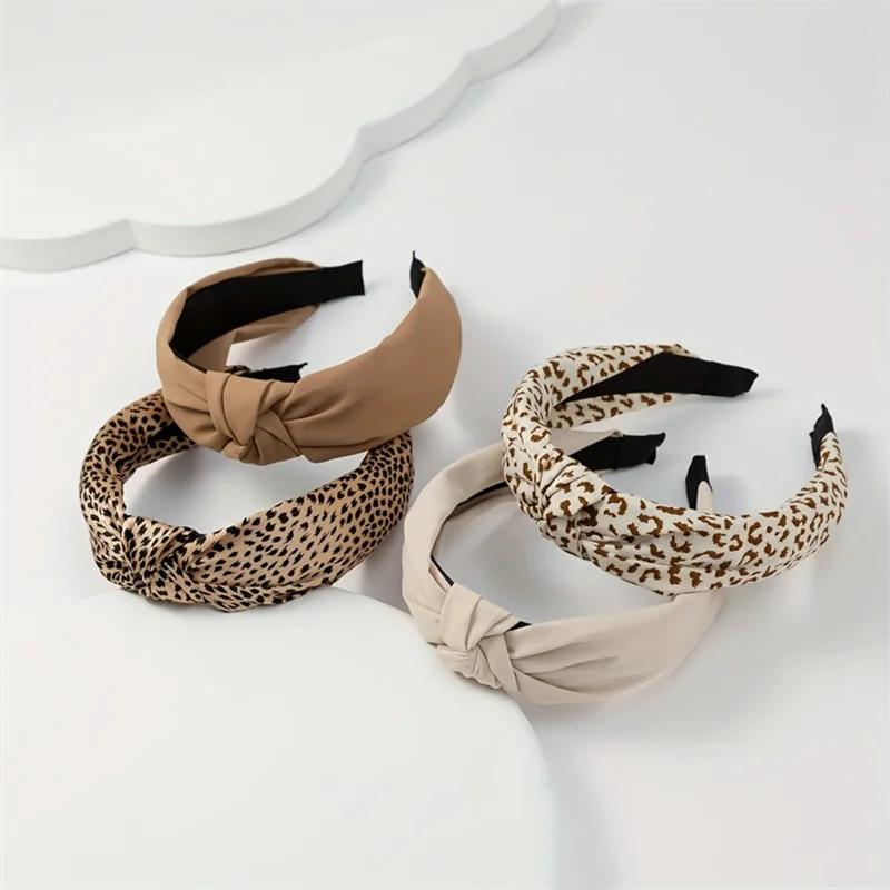 Femmes populaires imprimé léopard Satin tissu noeud bandeau dame filles Simple solide sergé tissu noué bandeau décontracté tête cerceau