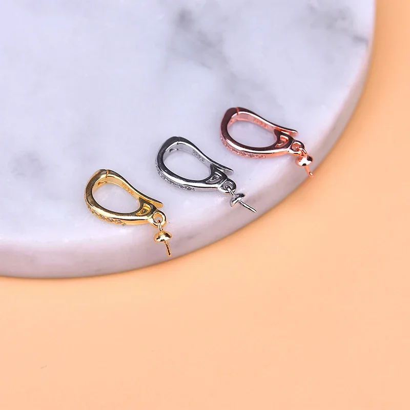 Fermoir en zircon incrusté d'argent pur S925, accessoires de bricolage pour bijoux, avec support de perles et fermoir pendentif |
