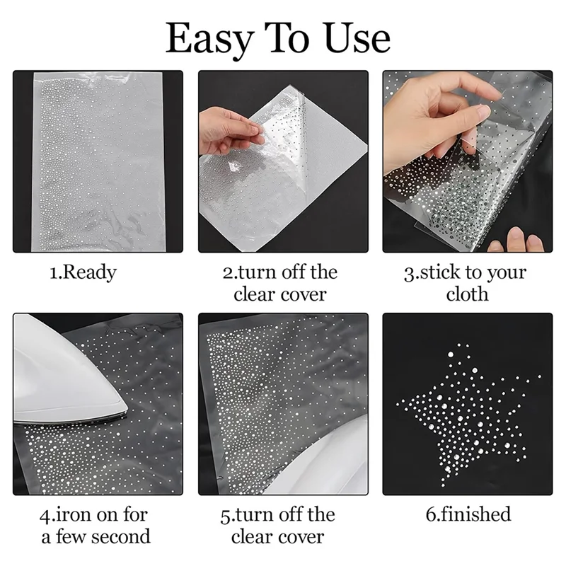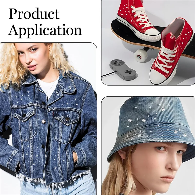 - Permet de personnaliser facilement des vêtements et tissus avec des strass et paillettes