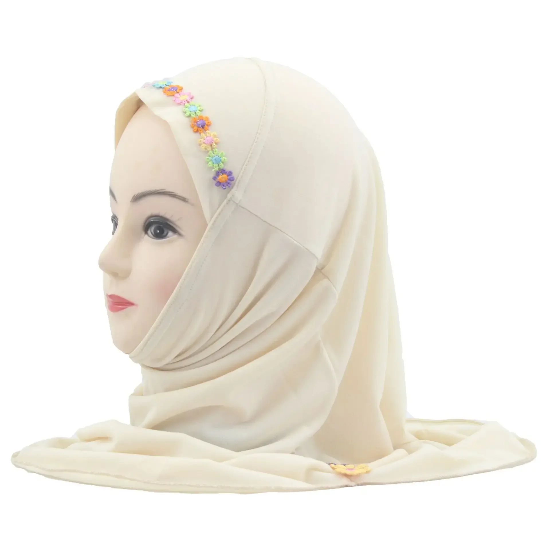 Filles enfants musulman belle Hijab islamique arabe écharpe châles motif de fleur couleur unie Amira Hijab foulard prière chapeau bandeau |
