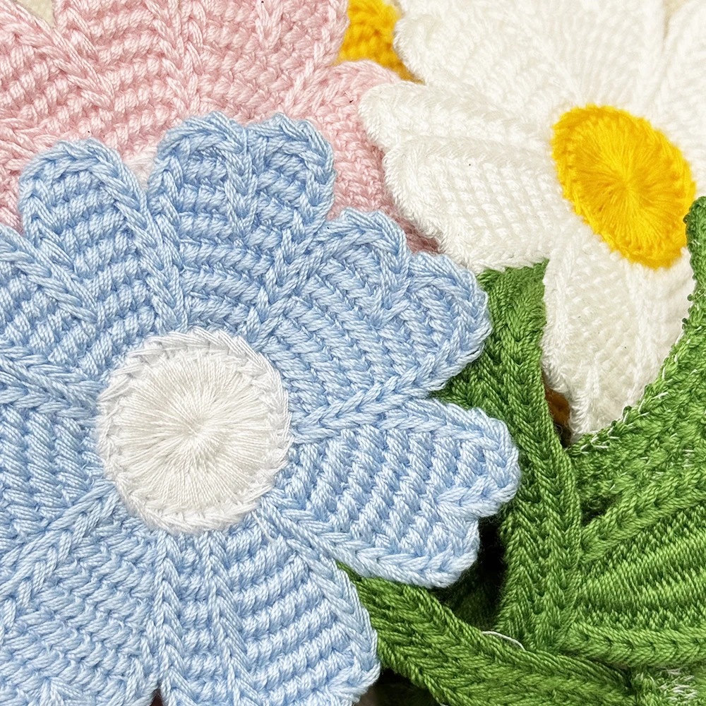 Fleurs brodées finies à la main tricotées fleurs de soleil Crochet coudre sur vêtements décoratifs maison Ornamen Applique bricolage |