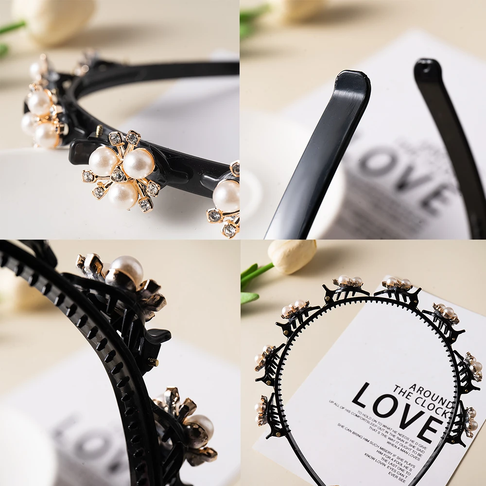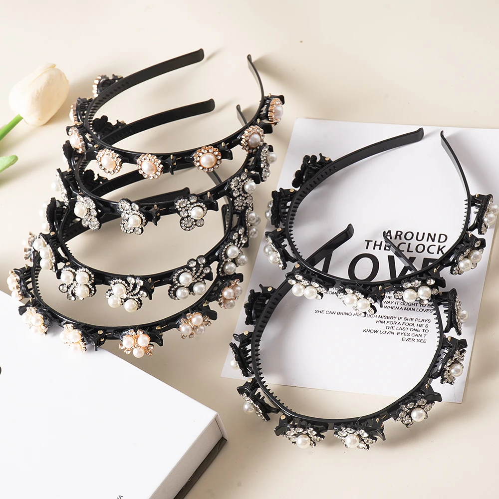Fleurs de perle Épingle À Cheveux Bandeaux pour Femmes Antidérapant Bandeau Strass Bandes De Cheveux Clips Coiffure Double Frange Cheveux Accessoires |