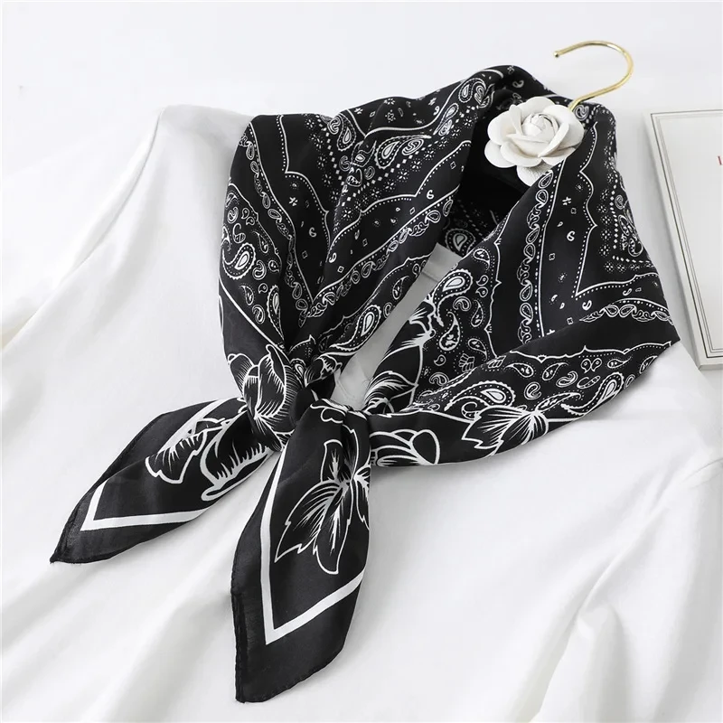 Foulard Carré à Imprimé Floral de Luxe pour Femme, Bandeau de Cheveux Hijab 70cm, Châle en Satin, Ruban de Sauna, 2024 |