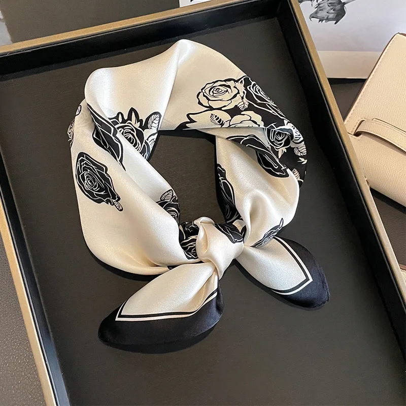 Foulard Carré à Imprimé Floral de Luxe pour Femme, Bandeau en Satin Doux, Sac Hijab, Ruban, Bandeau de Sauna, Cadeau |