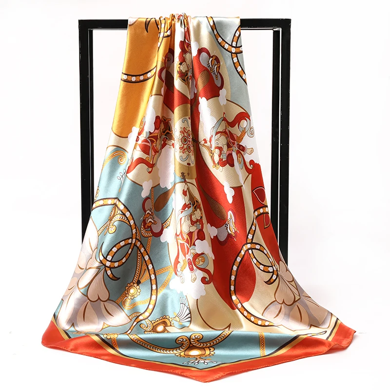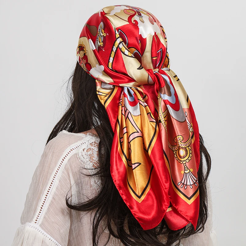 Foulard carré en Satin de soie pour femmes, châle de haute qualité, Foulard à fleurs, bandeau pour dames, bandes de cheveux imprimées, enveloppes Hijab, Bandana |