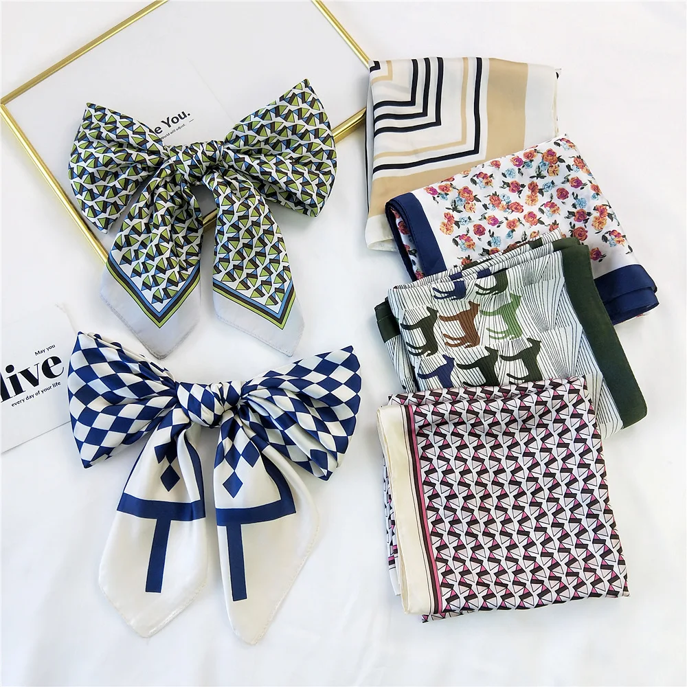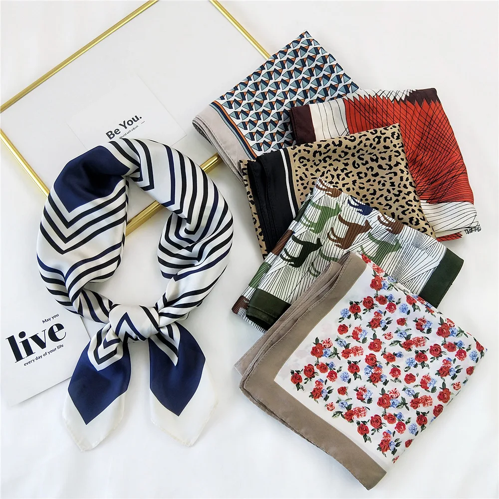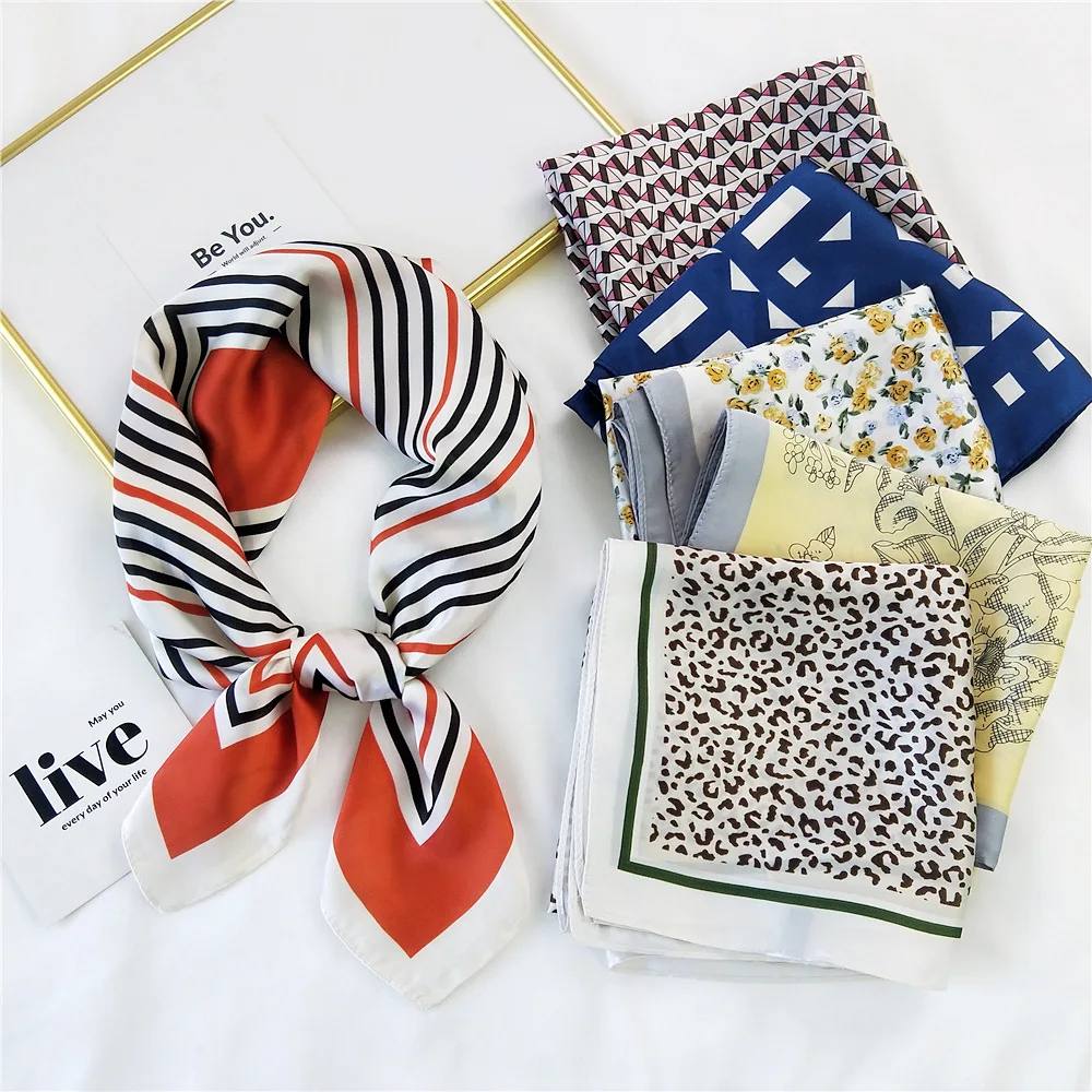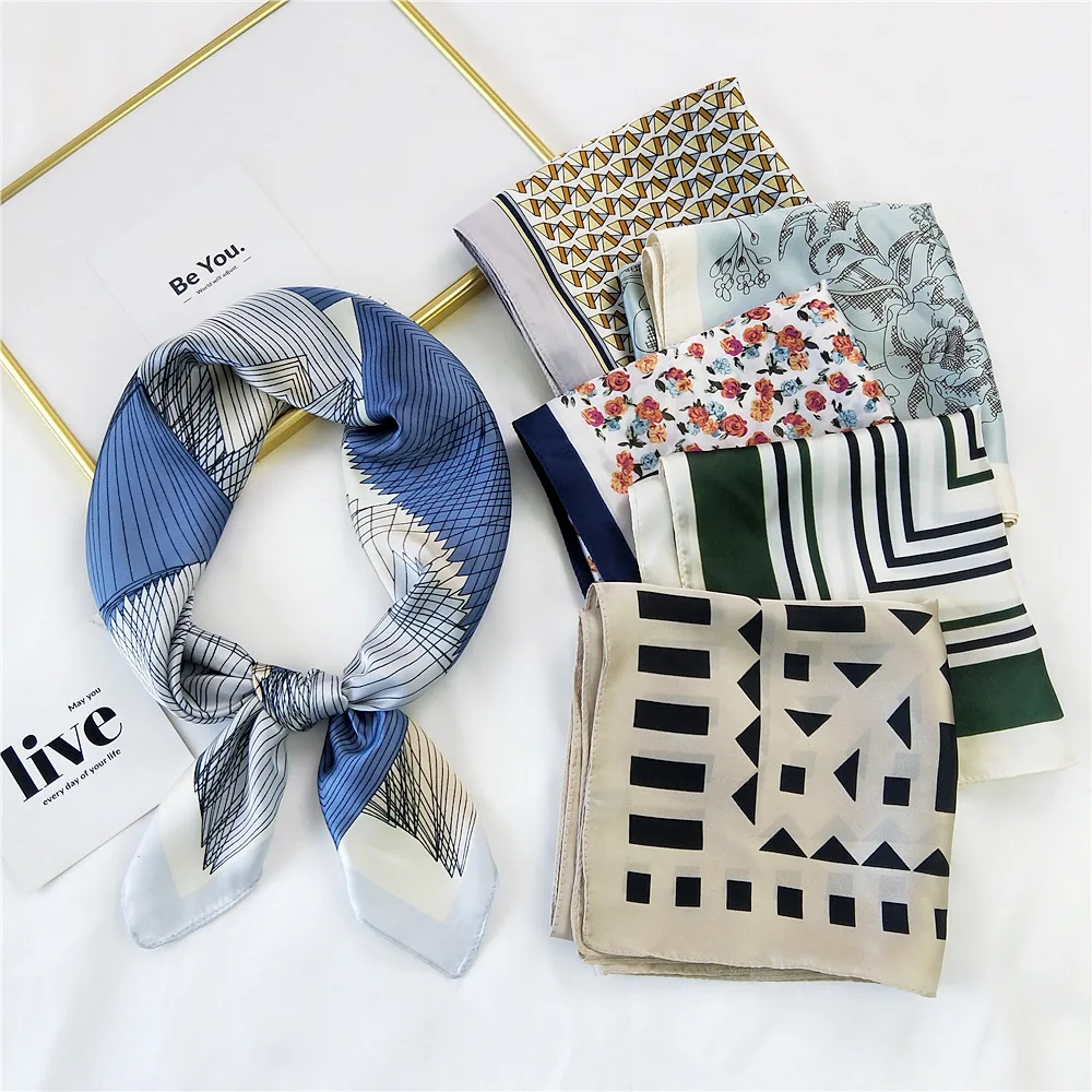 Foulard carré imprimé de luxe à la mode, 70x70cm, ruban de tête souple, Bandana Hijab Simple en Satin |