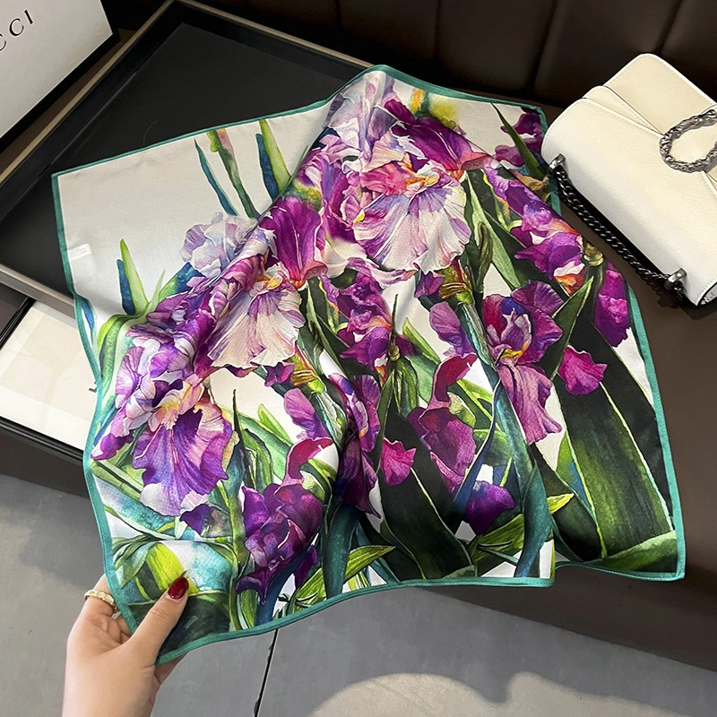 Foulard carré en soie véritable pour femmes, imprimé Floral, châle de luxe, Hijab, bandeau Bandana, 2024 100%Foulard carré en soie véritable pour femmes, imprimé Floral, châle de luxe, Hijab, bandeau Bandana, 2024 100%