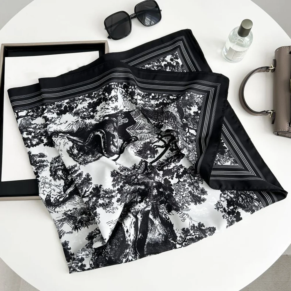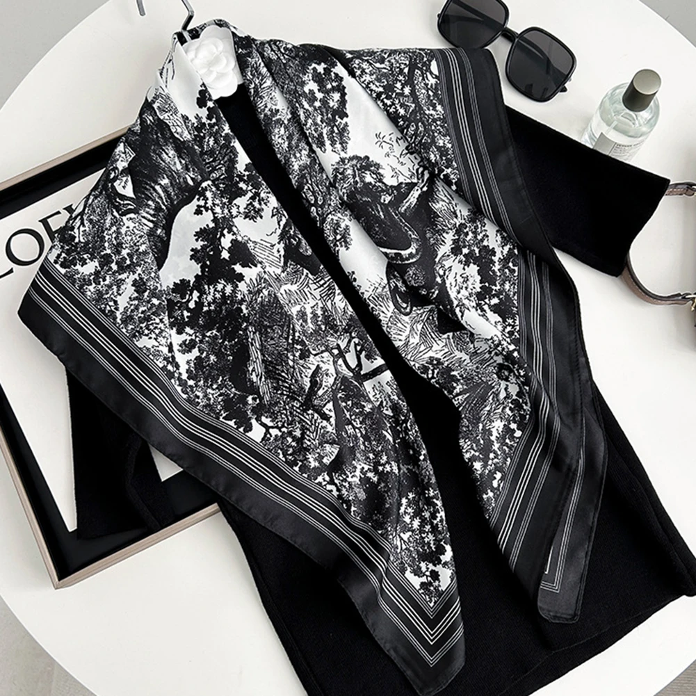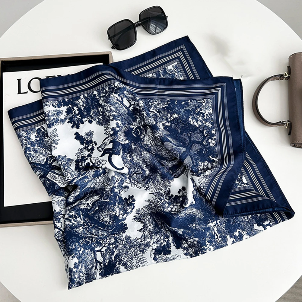 Foulard Carré Imprimé pour Femme, Hijab de Marque de Luxe, Châle Bandana, Silencieux en Mousseline, 90x90cm