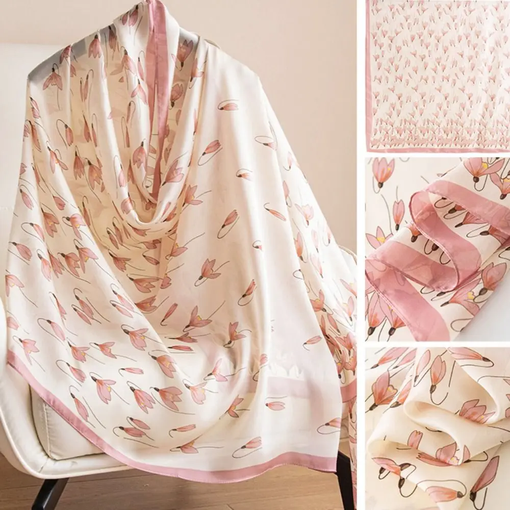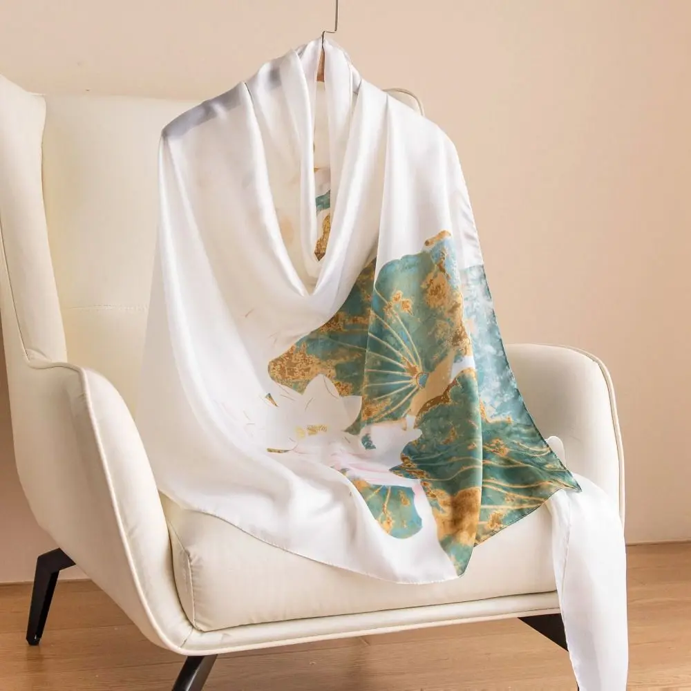 Foulard coréen luxe foulard en soie élégant motif Lotus en mousseline de soie châle enveloppement impression doux femmes Hijab châles femme