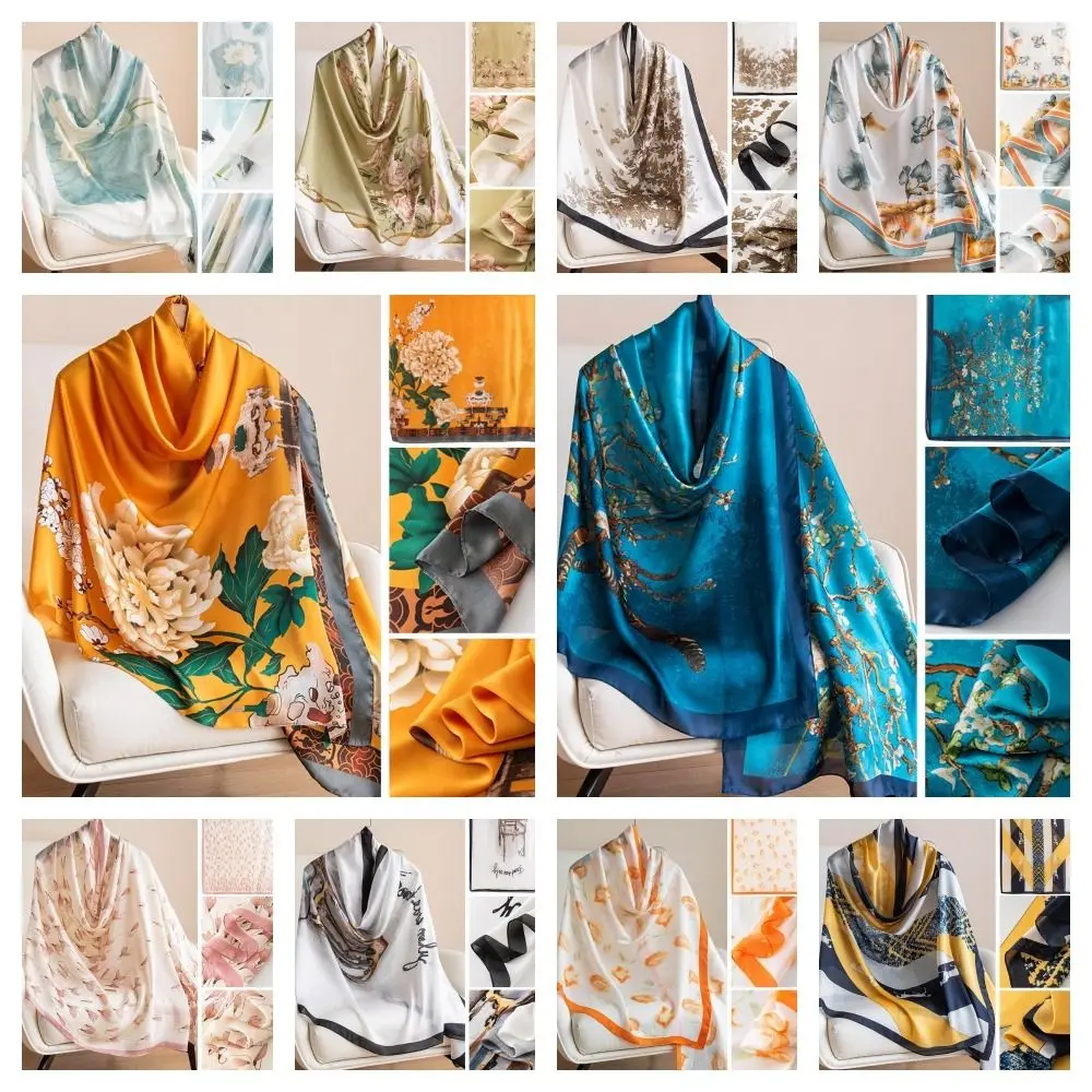 Foulard coréen luxe foulard en soie élégant motif Lotus en mousseline de soie châle enveloppement impression doux femmes Hijab châles femme |
