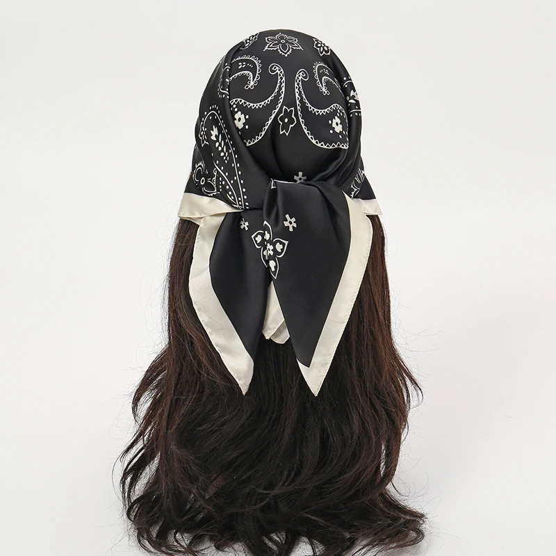 Foulard de cheveux en Satin de soie Hijab 70x70cm, bandeau carré imprimé pour femmes, silencieux de cou, mode dames, Bandana de luxe |