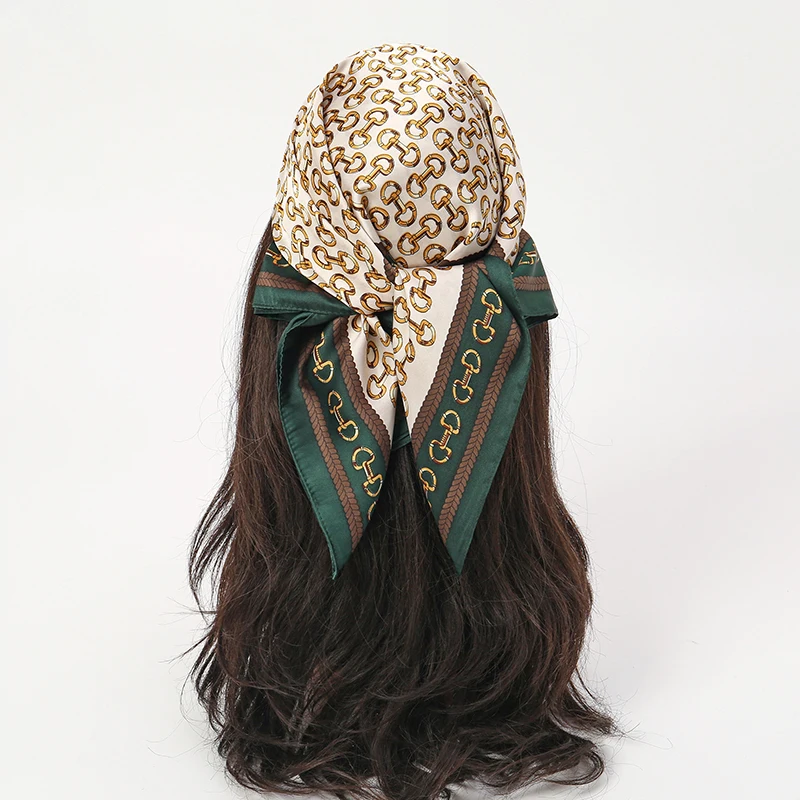 Foulard de cheveux en Satin de soie Hijab 70x70cm, bandeau carré imprimé pour femmes, silencieux de cou, mode dames, Bandana de luxe