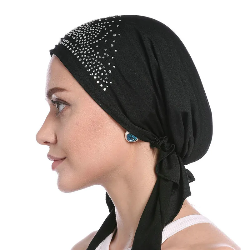 Foulard de Sauna Musulman pour Femme, Chapeau Fin d'Été, Bonnet Hijab Nik, Turban Solide en Diamant, Chapeaux Ronds Indiens pour Dame |