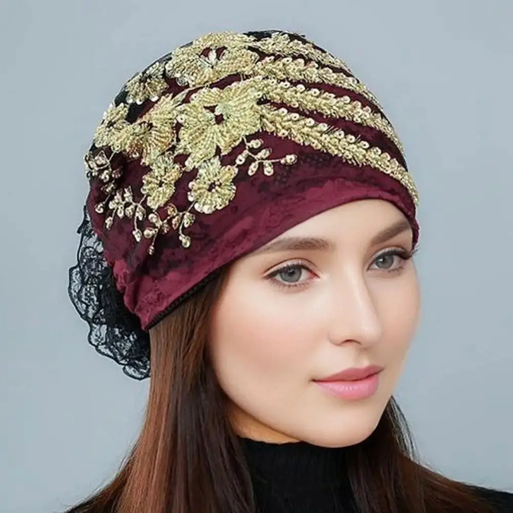 Foulard de tête dentelle Turban chapeaux fleur strass été mince foulard élastique cravate Hijab Turban chapeau islamique sous écharpe filles |