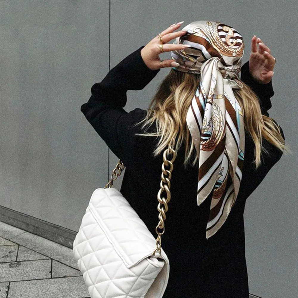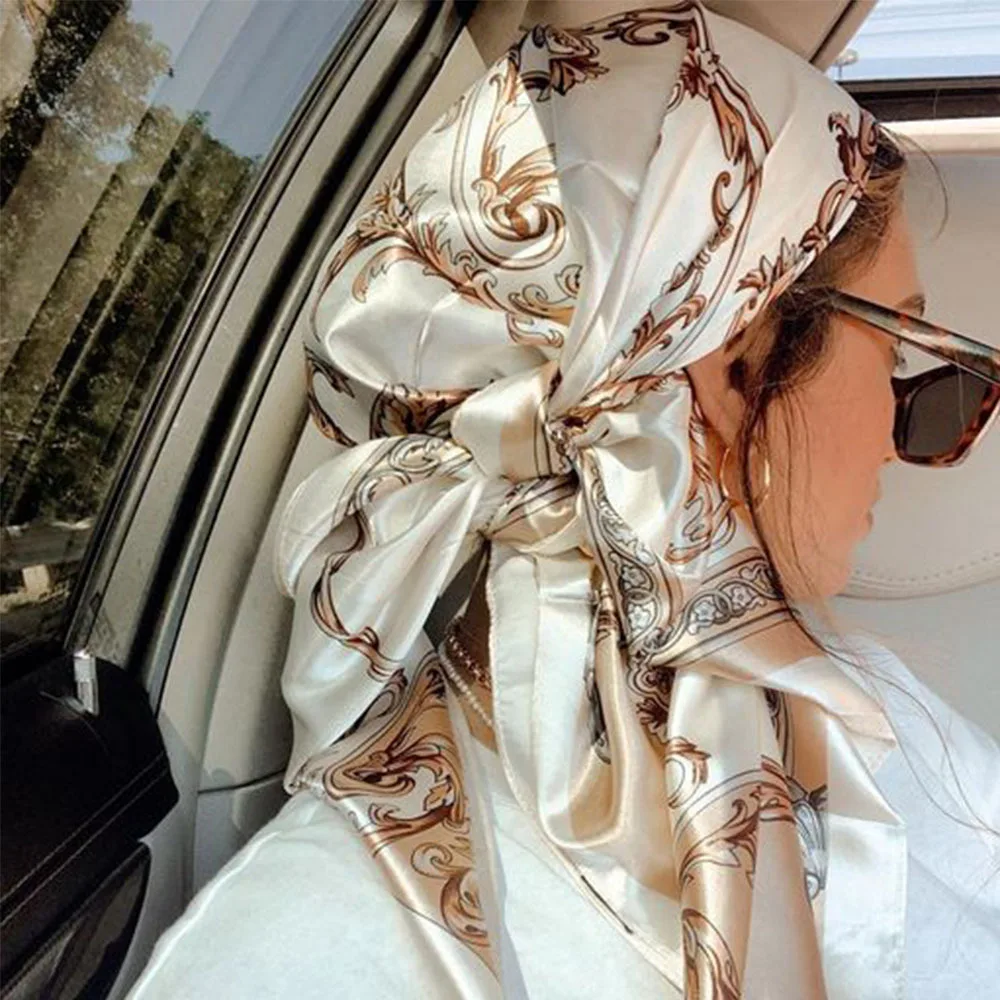 Foulard de tête en soie pour femmes, Foulard de luxe à la mode pour cheveux, châle en Satin, Foulard carré de 90cm, Bandana Cheveux