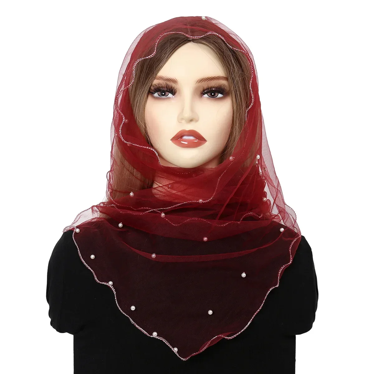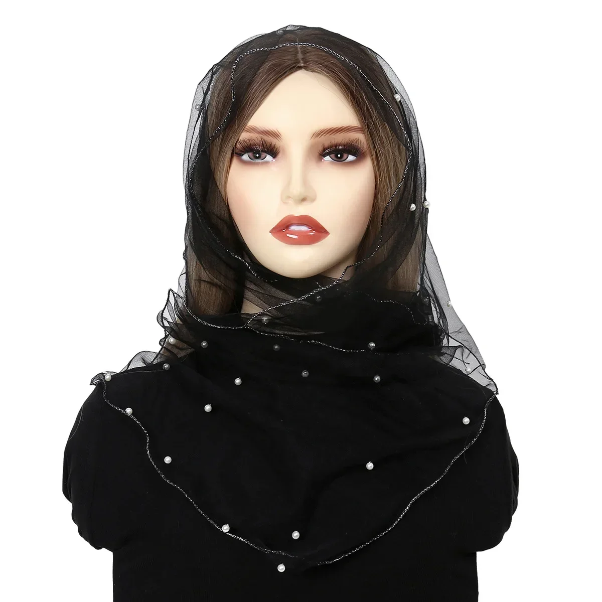 Foulard en dentelle à sequins pour femmes musulmanes, voile en tulle, châle en maille transparente, écharpe de sauna, hijab à la mode, 145*40 |