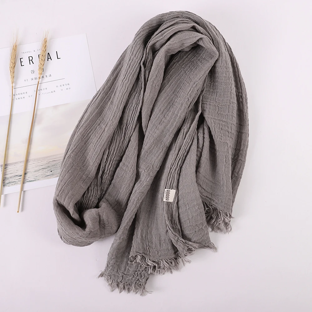 Foulard en lin et coton pour femmes, couleur unie, Hijab musulman, châles unis, grand Pashmina, enveloppant la tête, 2021