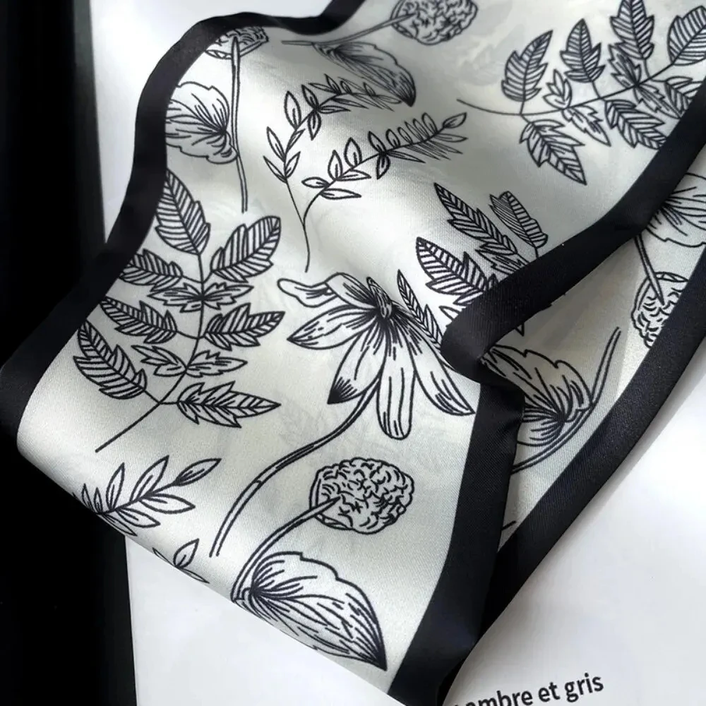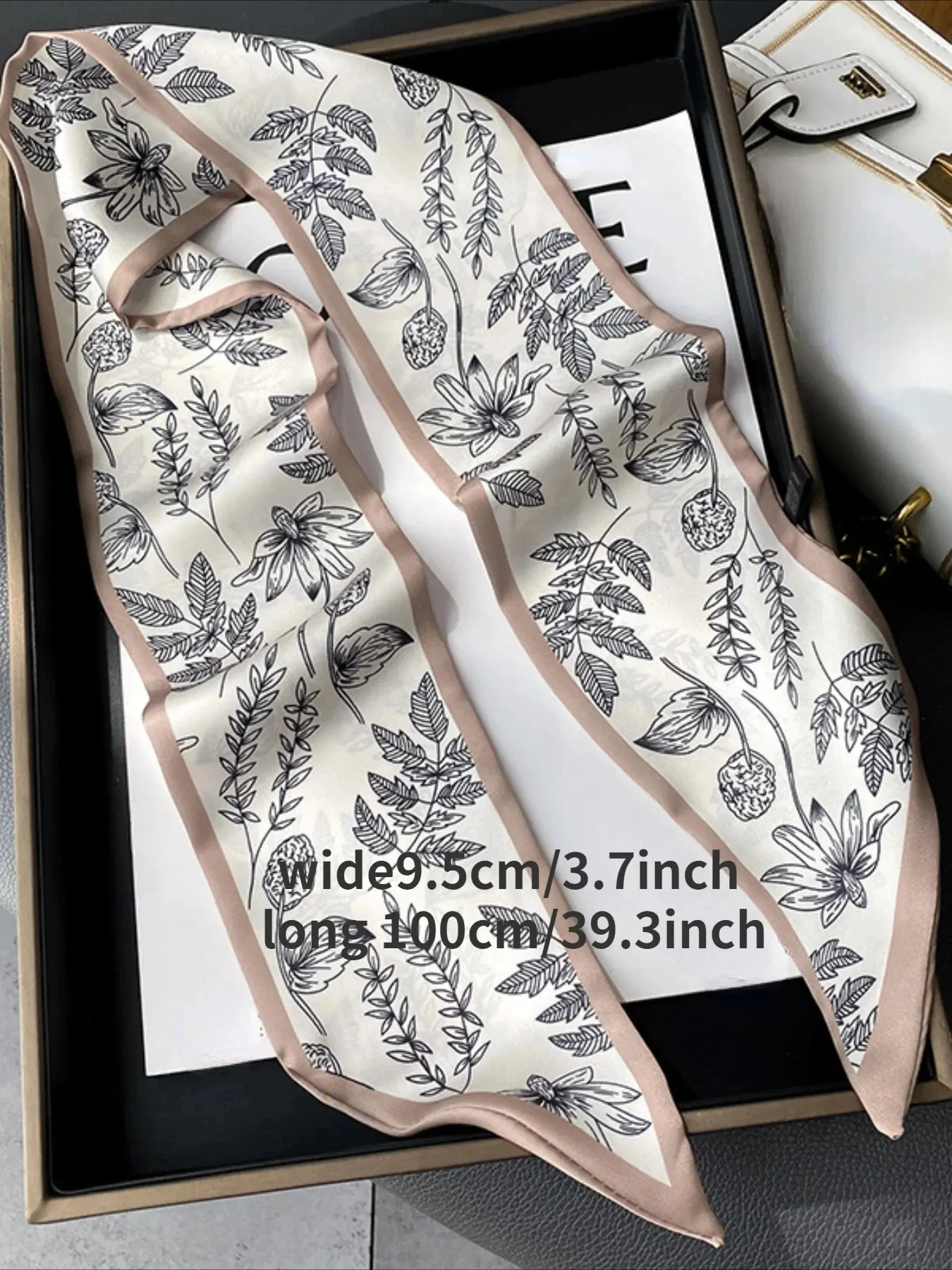 Foulard en ruban imprimé pour cheveux pour femmes, sac à cravate, foulard slim en soie, bandes florales, nouvelle collection 2024 |