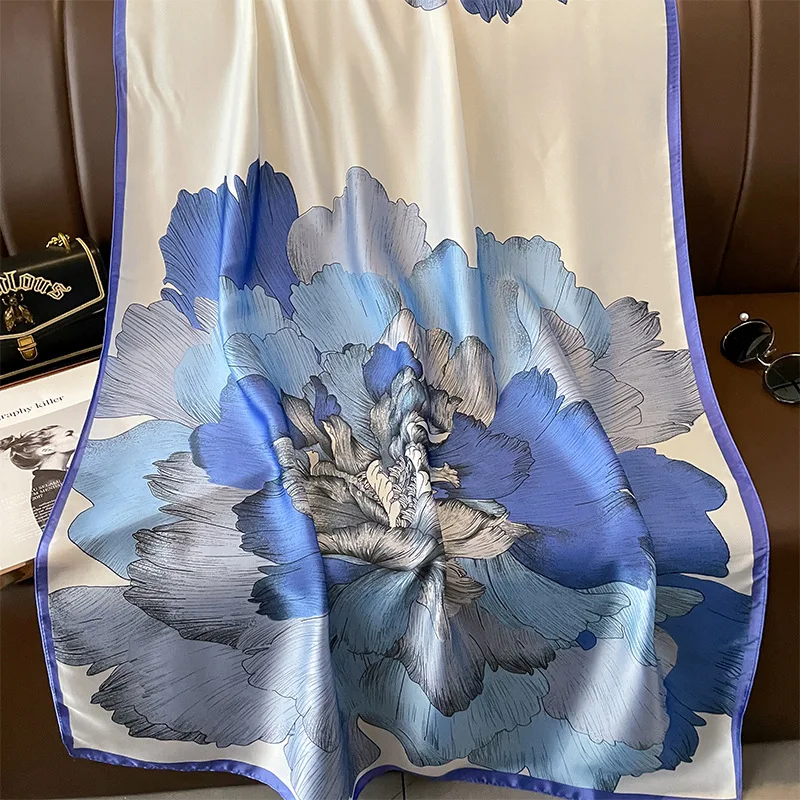 Foulard de tête femmes marque de luxe 90 × 90 cm foulard carré en soie Satin Bandana Cheveux doux foulard Hijab foulards de Cheveux pour dames |