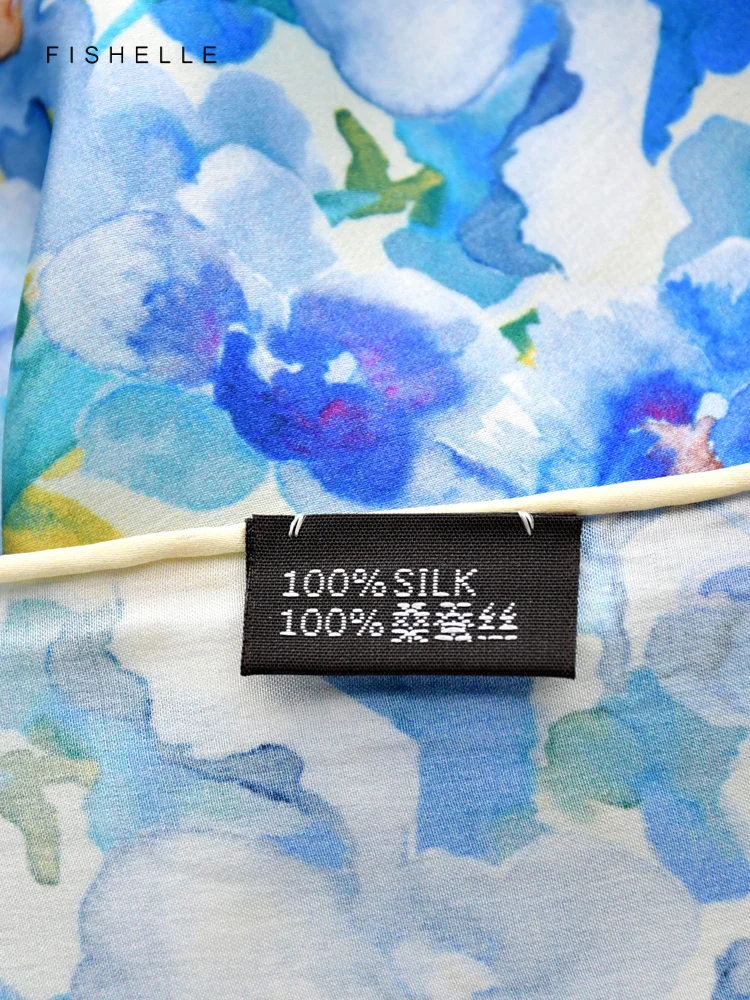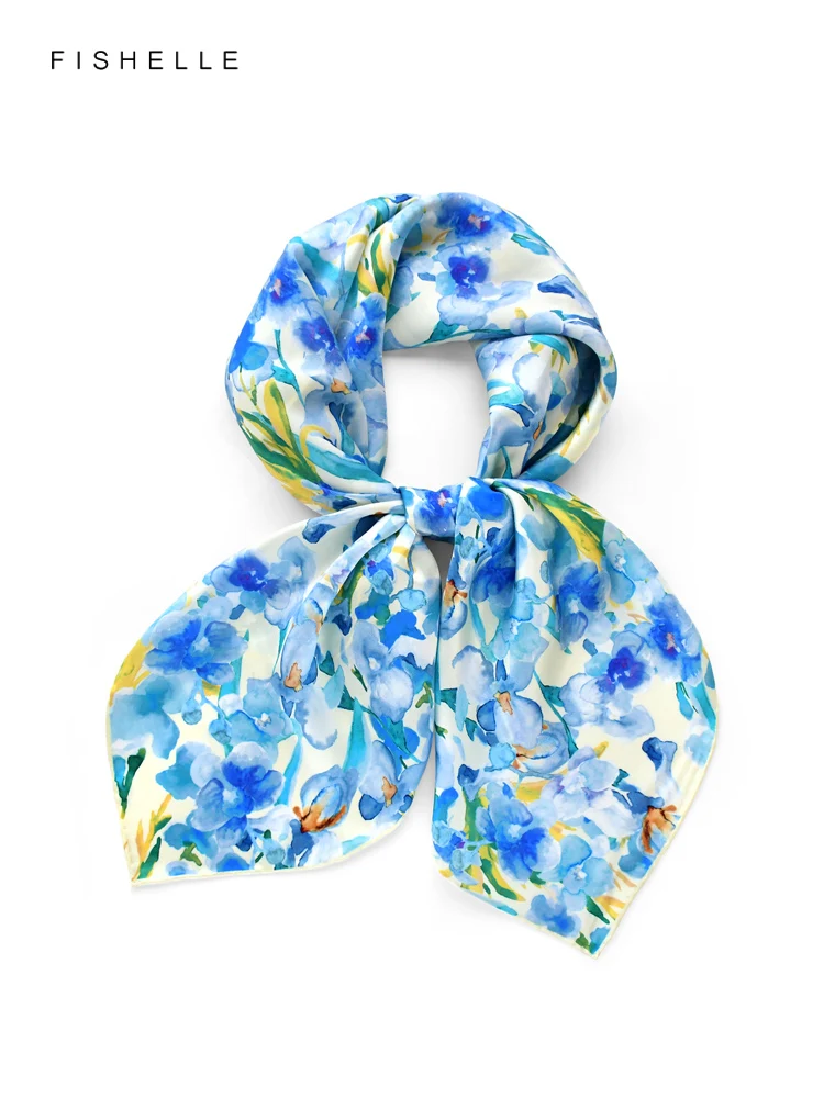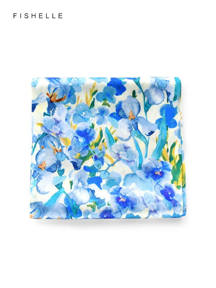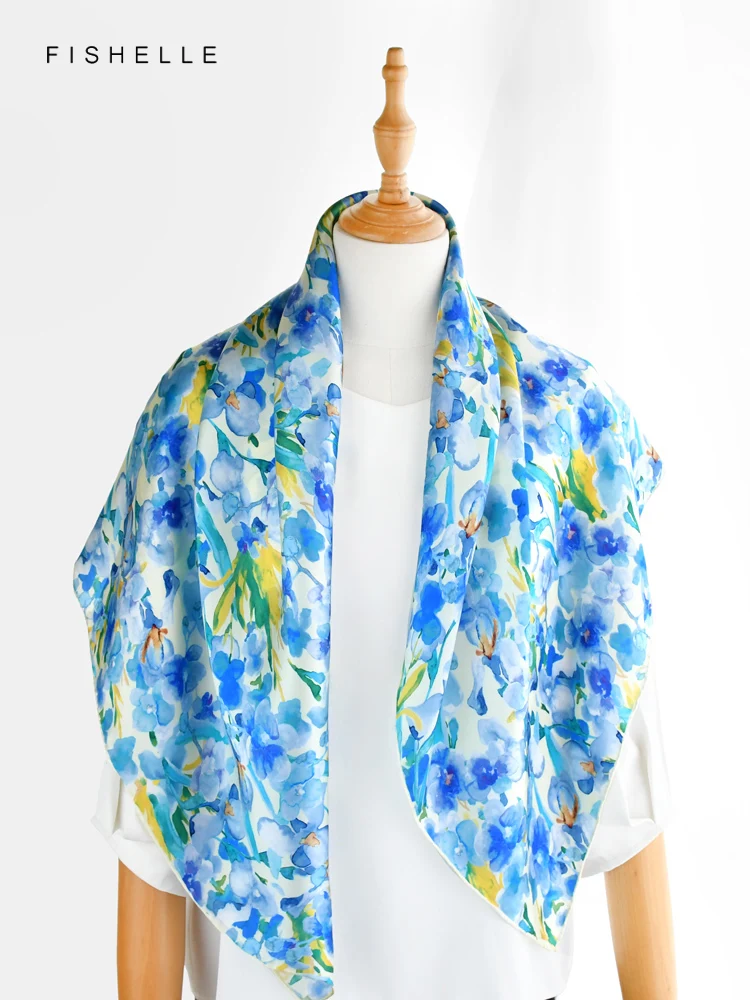 Foulard en soie naturelle imprimé fleurs d’hibiscus pour dames, foulards carrés en soie véritable, châle en satin, printemps et automne, 600