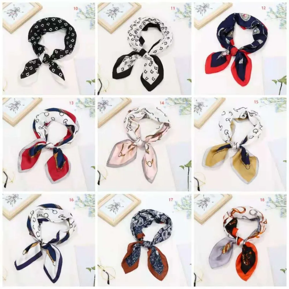 Foulard en soie pour femmes, 70 × 70cm, petit foulard carré en Satin imprimé, banderole assortie, Bandana Hijab féminin |