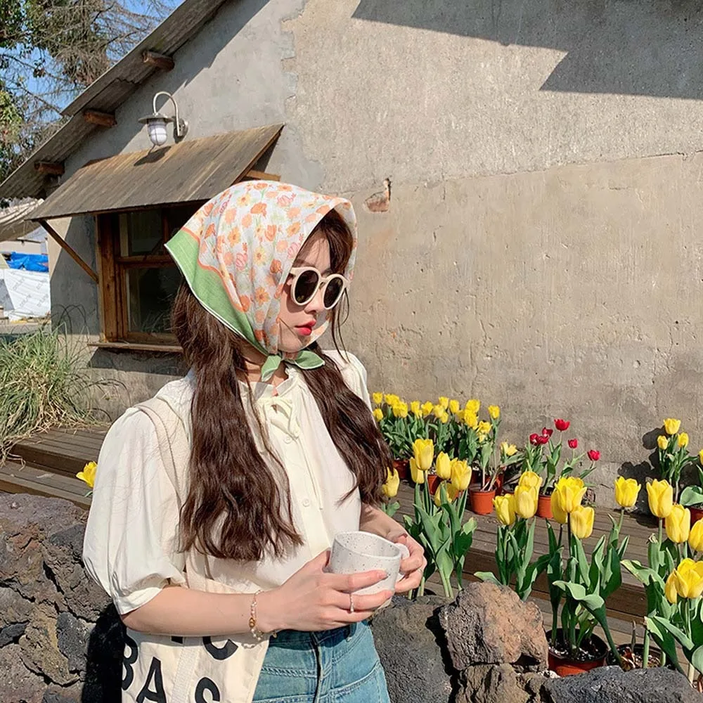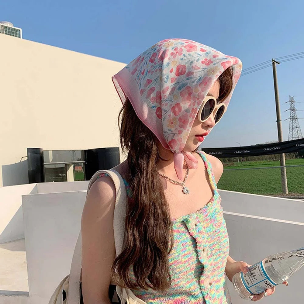 Foulard en soie respirant pour printemps, Absorption de la sueur, carré Hijab à séchage rapide, protection solaire, foulard imprimé de fleurs en lin, été |
