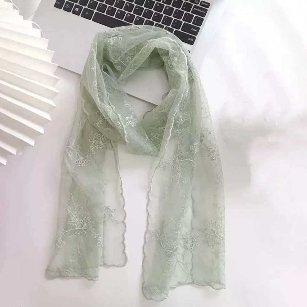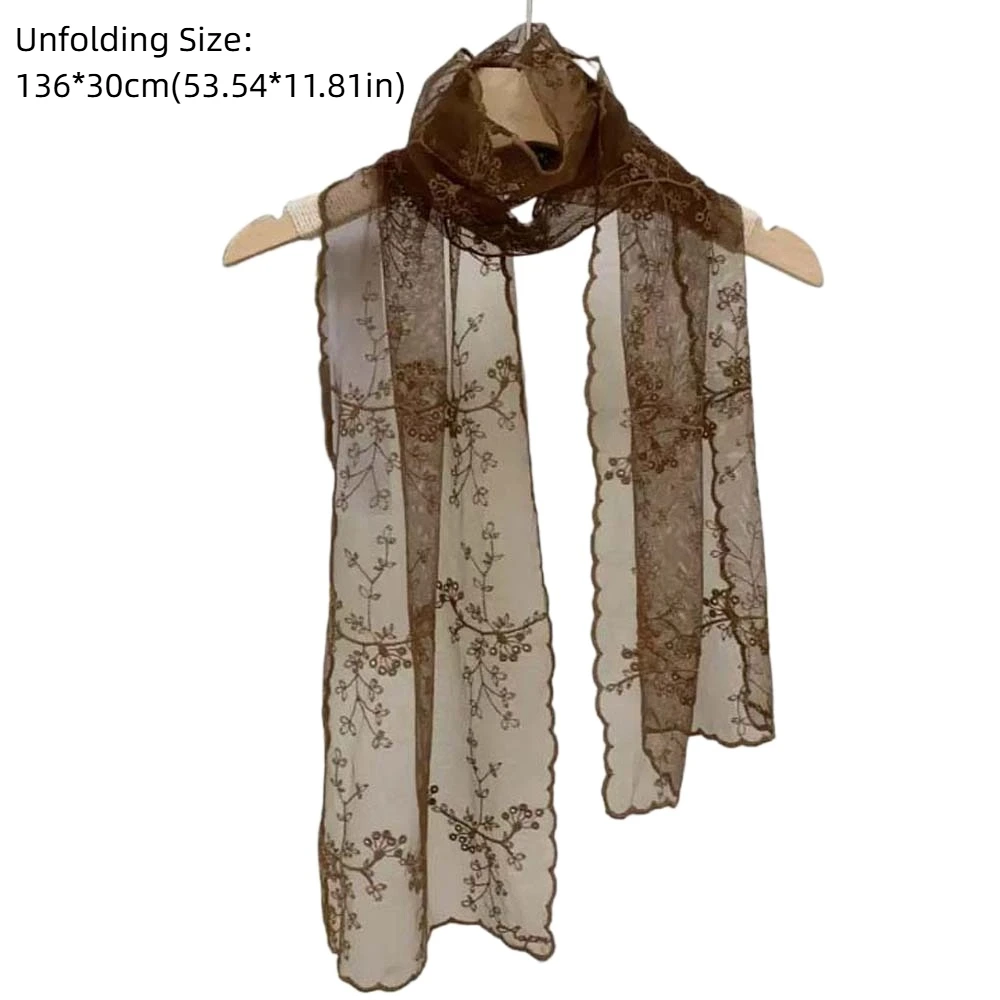 Foulard en soie respirant pour printemps, châle en Polyester à fleurs brodées à séchage rapide, léger et Long, Hijab, décoration de cou