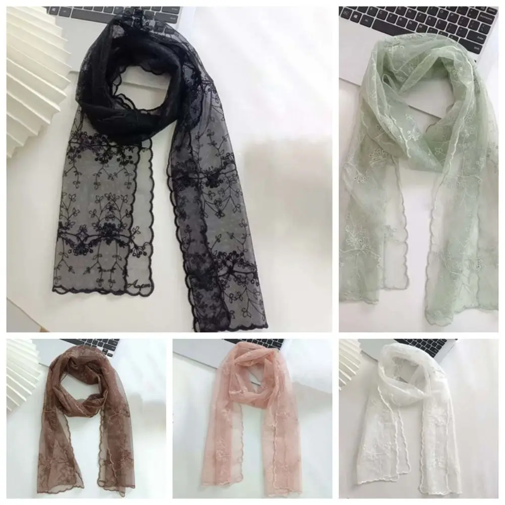 Foulard en soie respirant pour printemps, châle en Polyester à fleurs brodées à séchage rapide, léger et Long, Hijab, décoration de cou |