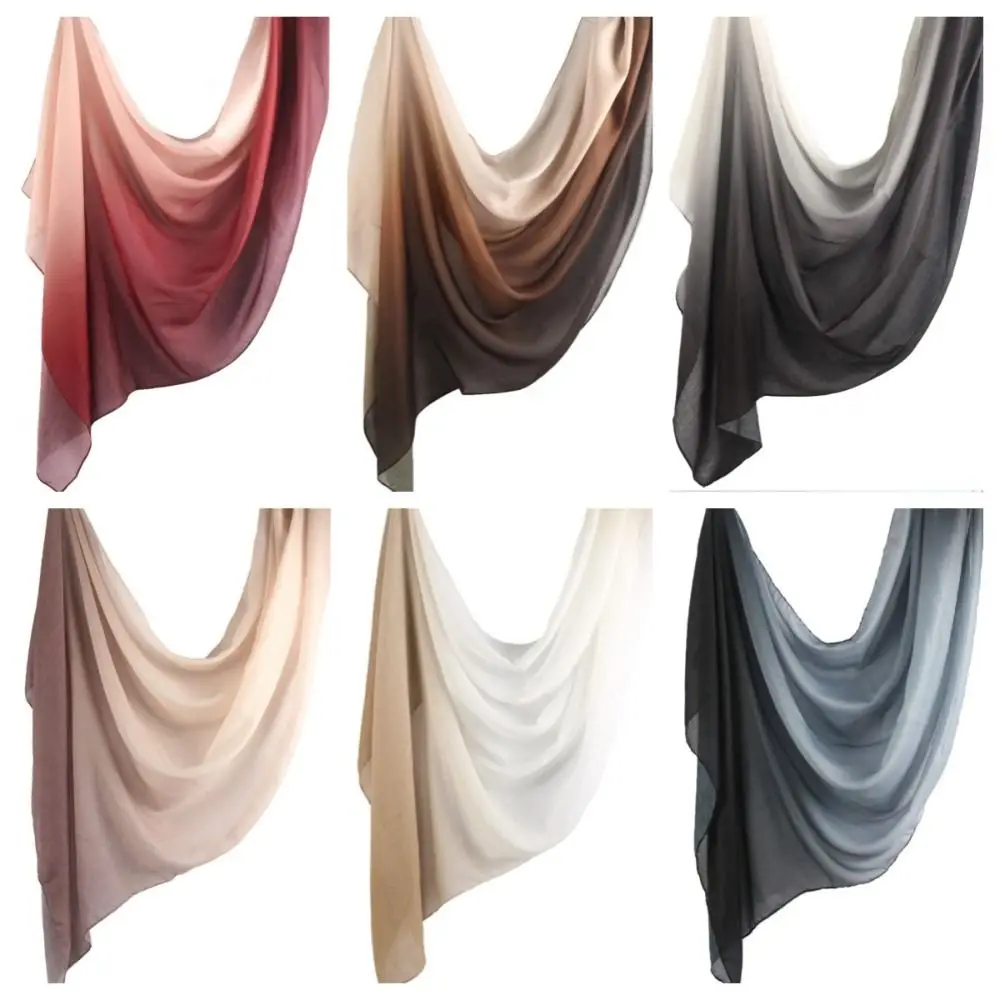 Foulard Hijab de luxe de couleur dégradée, Long Bandana, large bord, enveloppes fines, châle de plage |