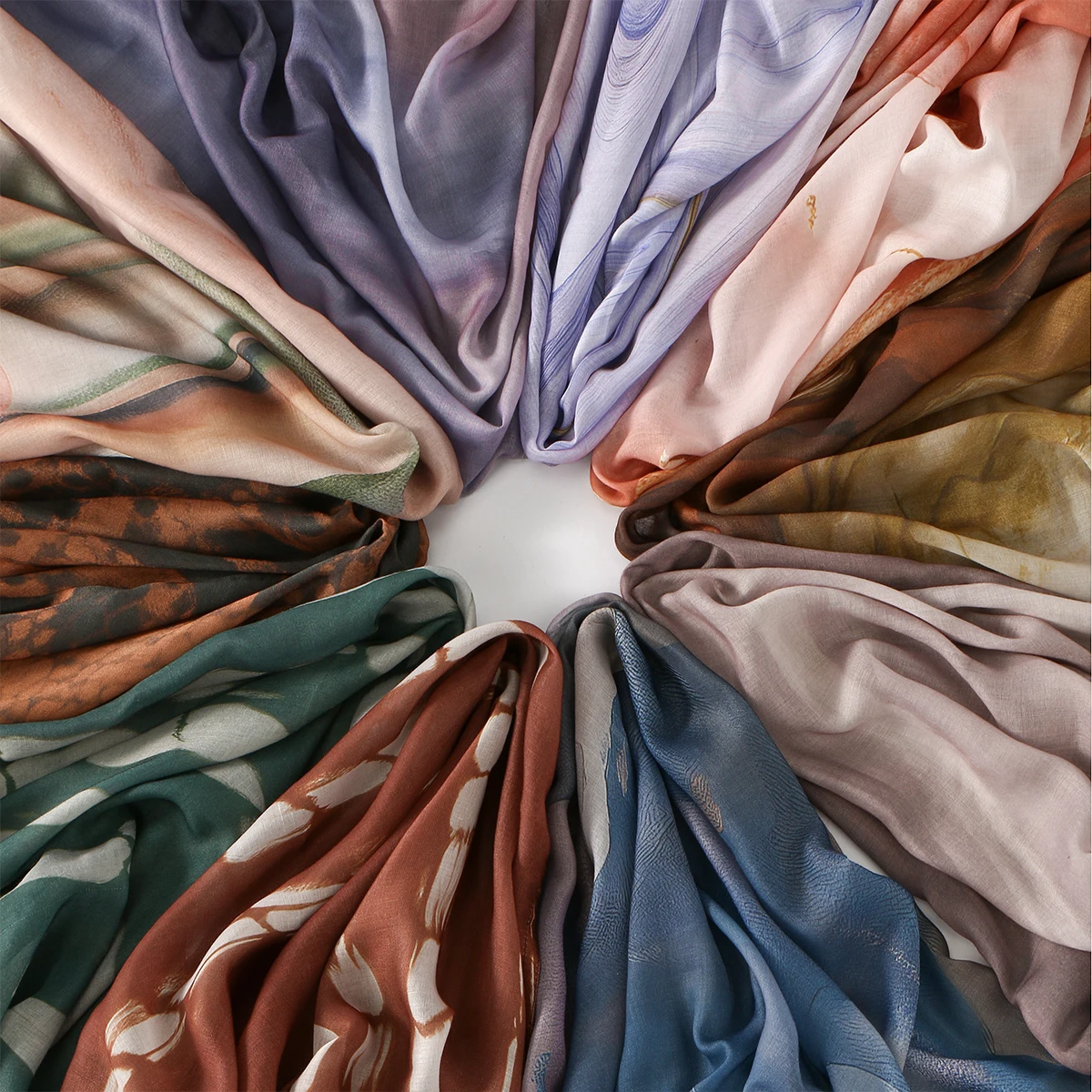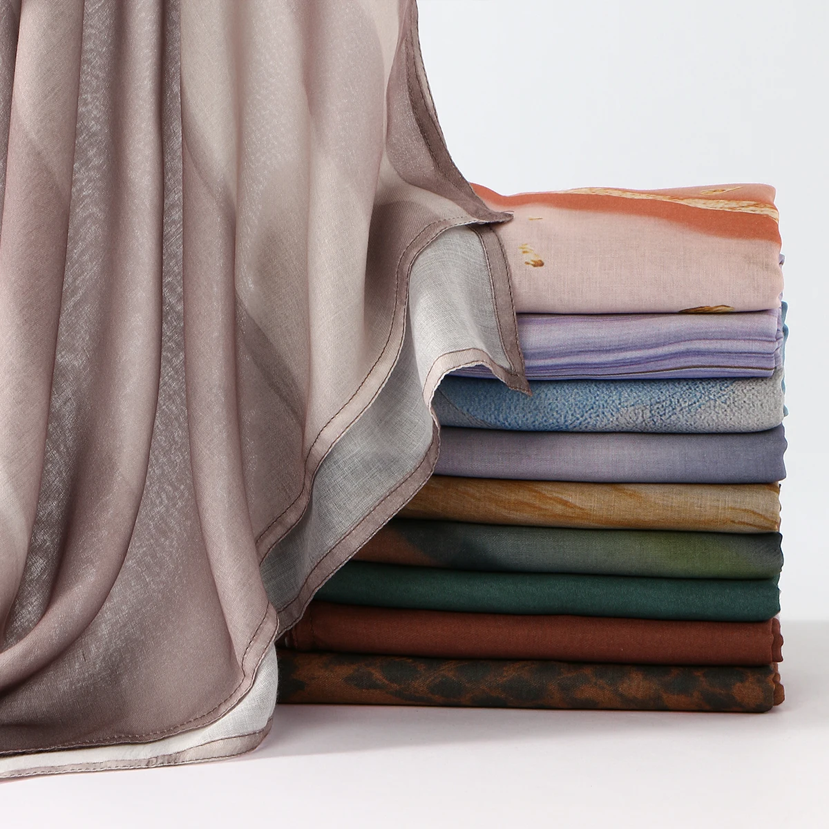 Foulard Hijab en rayonne de coton imprimé pour femmes, châles musulmans, enveloppes de mode, bandeau aquarelle, Turban islamique |