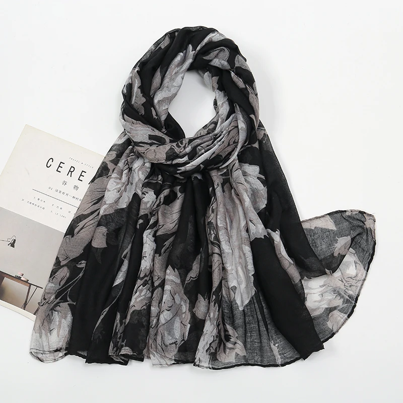 Foulard Hijab en Viscose de Coton Imprimé pour Femme Musulmane, Long Châle, Bandana, Turban Islamique, Bande de Sauna, Rond, Floral, Nouvelle Collection |