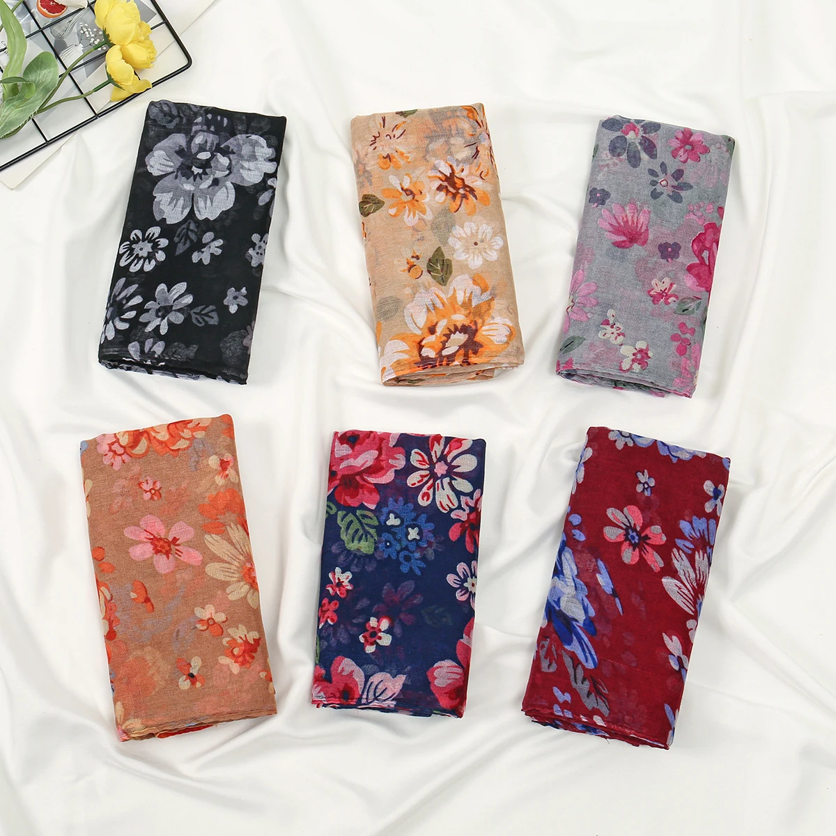 Foulard Hijab en Viscose imprimé Floral pour femme musulmane, châles doux, couvre-chef respirant d'été, Turban islamique |
