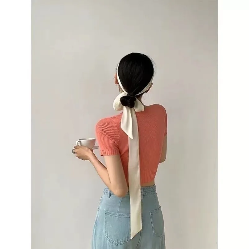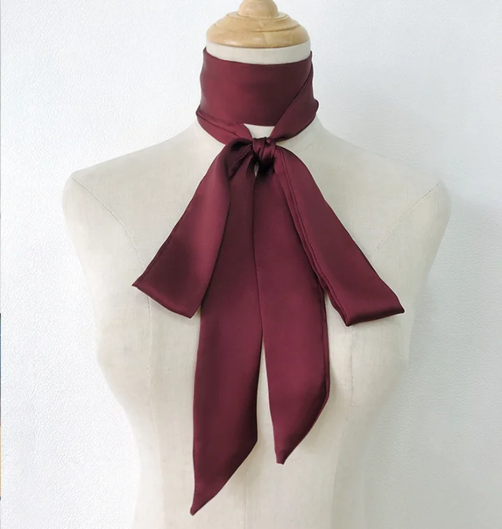 Foulard Long et slim pour femmes, 5x200cm, bandeau en Satin de soie, foulard mignon, couleurs unies, sac à la mode pour dames |