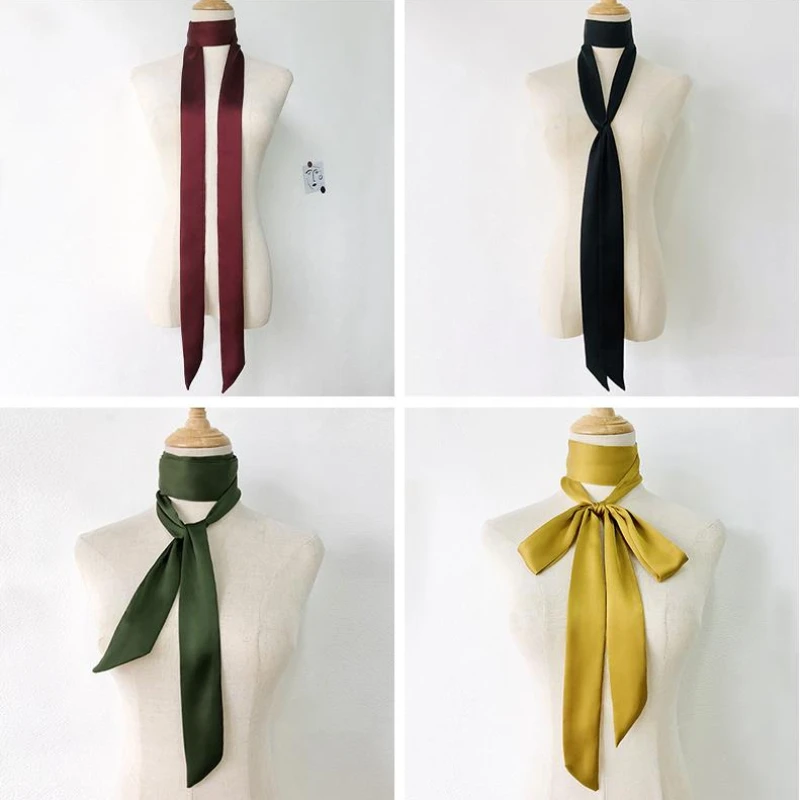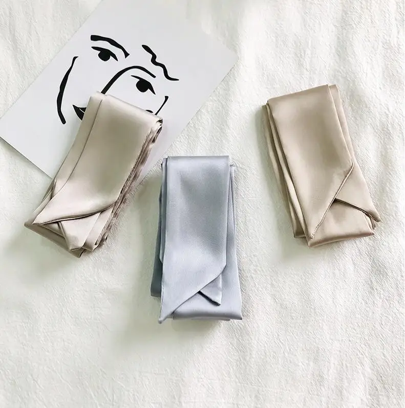 Foulard Long et slim pour femmes, bandeau en Satin soyeux, mignon, couleurs unies, sac à la mode, 5x200cm |