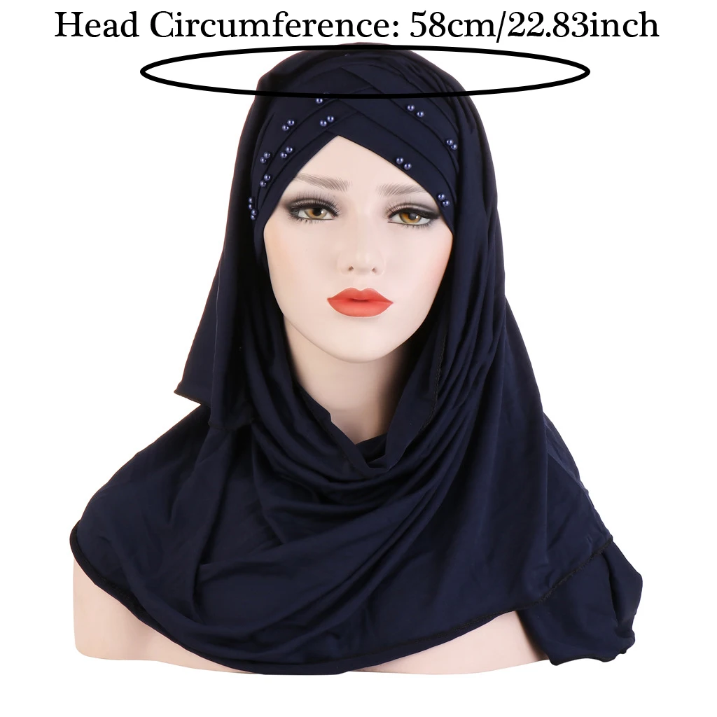 Foulard musulman uni Hijabs avec châles et enveloppes de perles Femme Musulman Hijab prêt à porter Turban foulards de tête pour femmes |