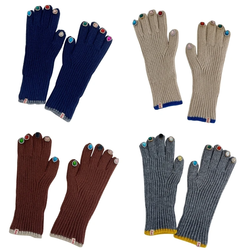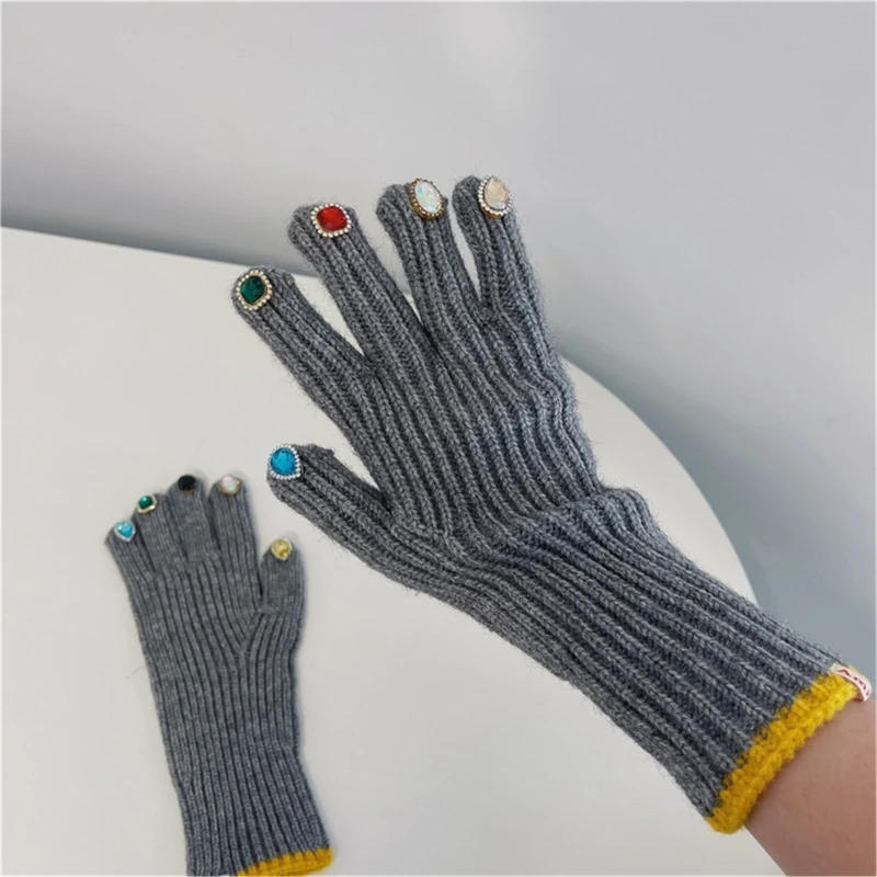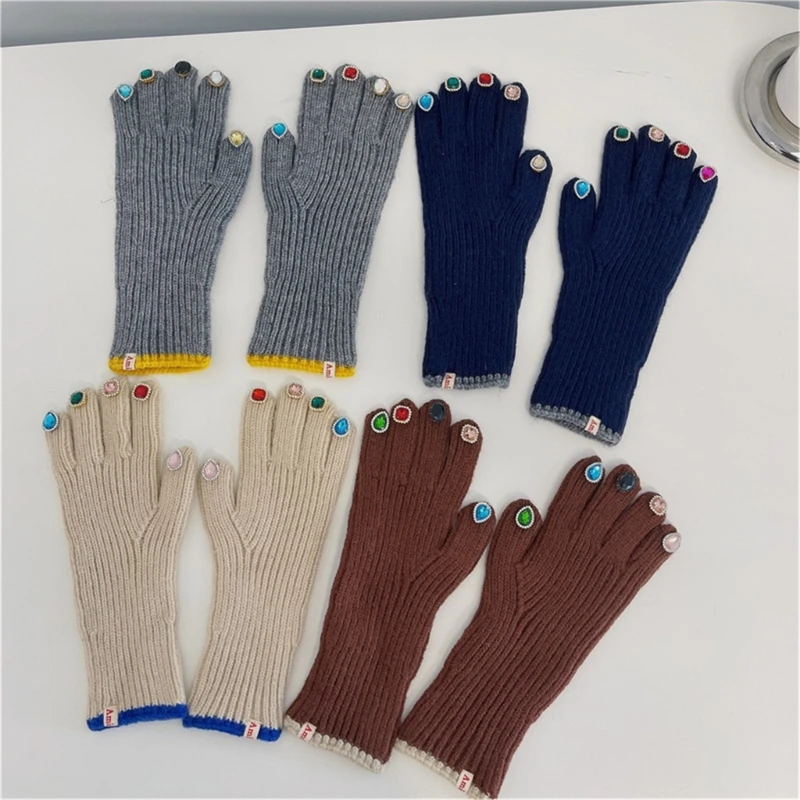 Gants chauds d'hiver pour femmes, en tricot avec décors sur le bout des doigts, mitaines de luxe, livraison directe |